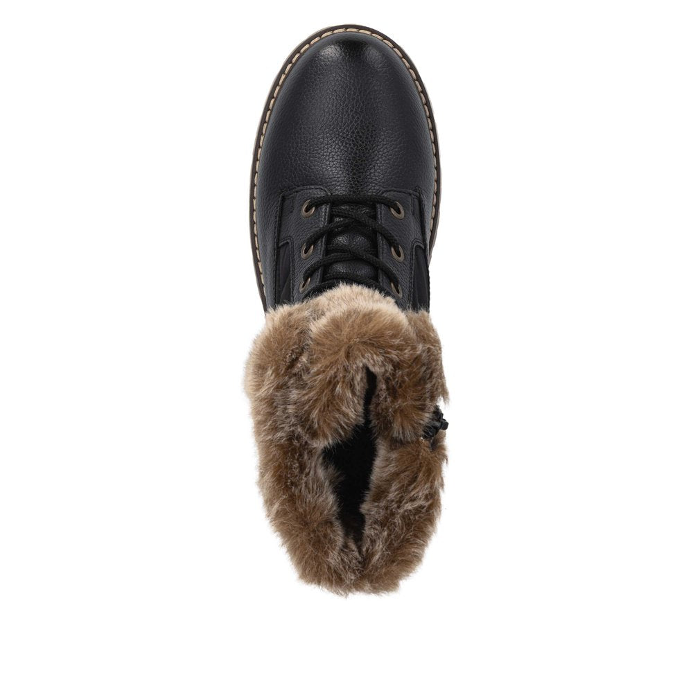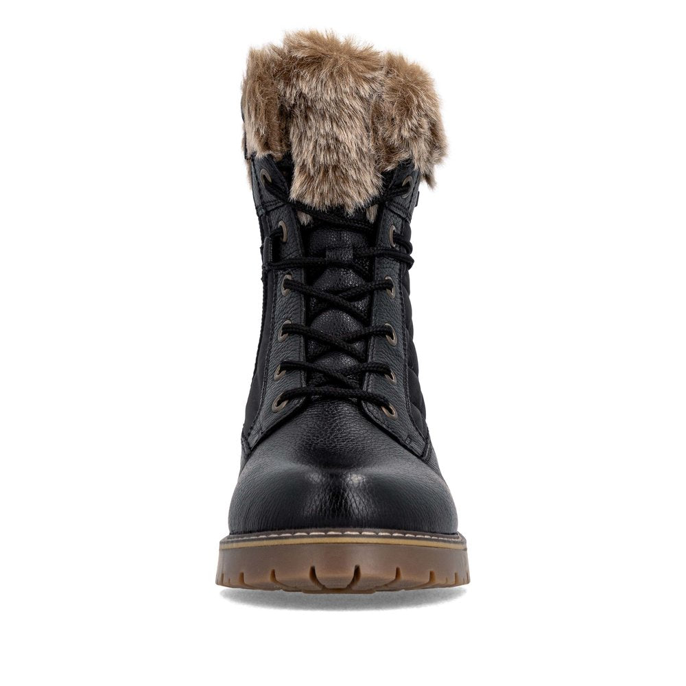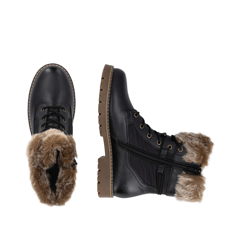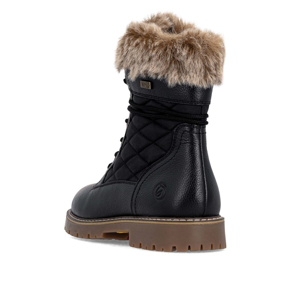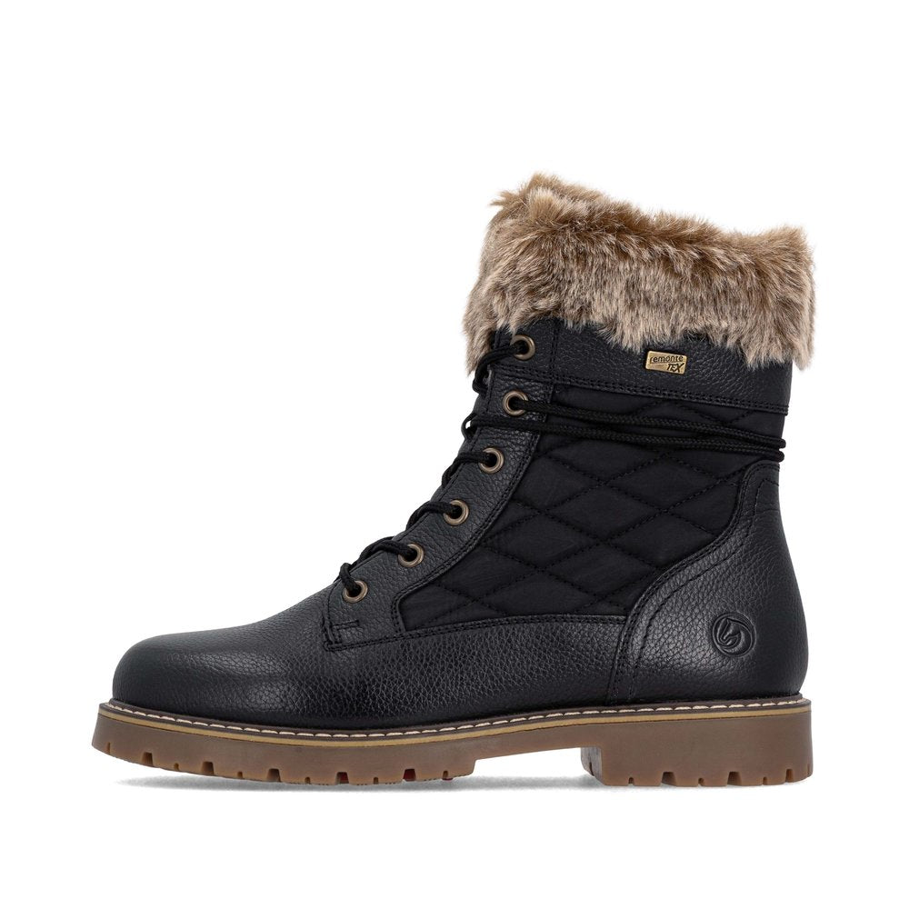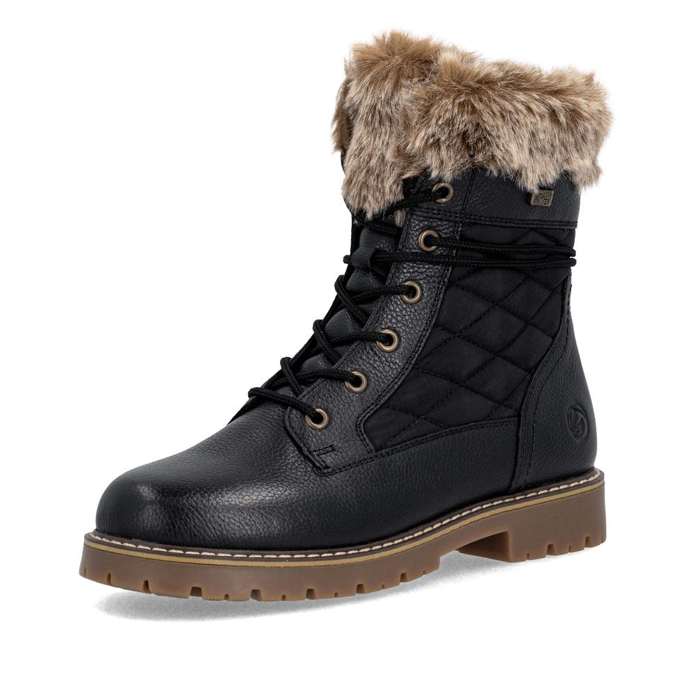 Profitez des journées froides ! Ces bottines à lacets Remonte blanches et marron en cuir lisse ont tout pour plaire. Outre le laçage, ce modèle est équipé d'une fermeture éclair pour un maintien optimal. Le col en fourrure sur la tige lui confère un petit plus. La semelle adhérente et amortissante assure une bonne adhérence à chaque pas. La largeur confort vous offre plus d'espace. Côté fonctionnalité, cette chaussure est un véritable atout : la membrane RemonteTEX est déperlante, les crampons repliables offrent une adhérence supplémentaire sur sol verglacé et la semelle intérieure chauffante protège du froid. Elle est également très confortable grâce à sa laine vierge douillette et très chaude. À vous de jouer !