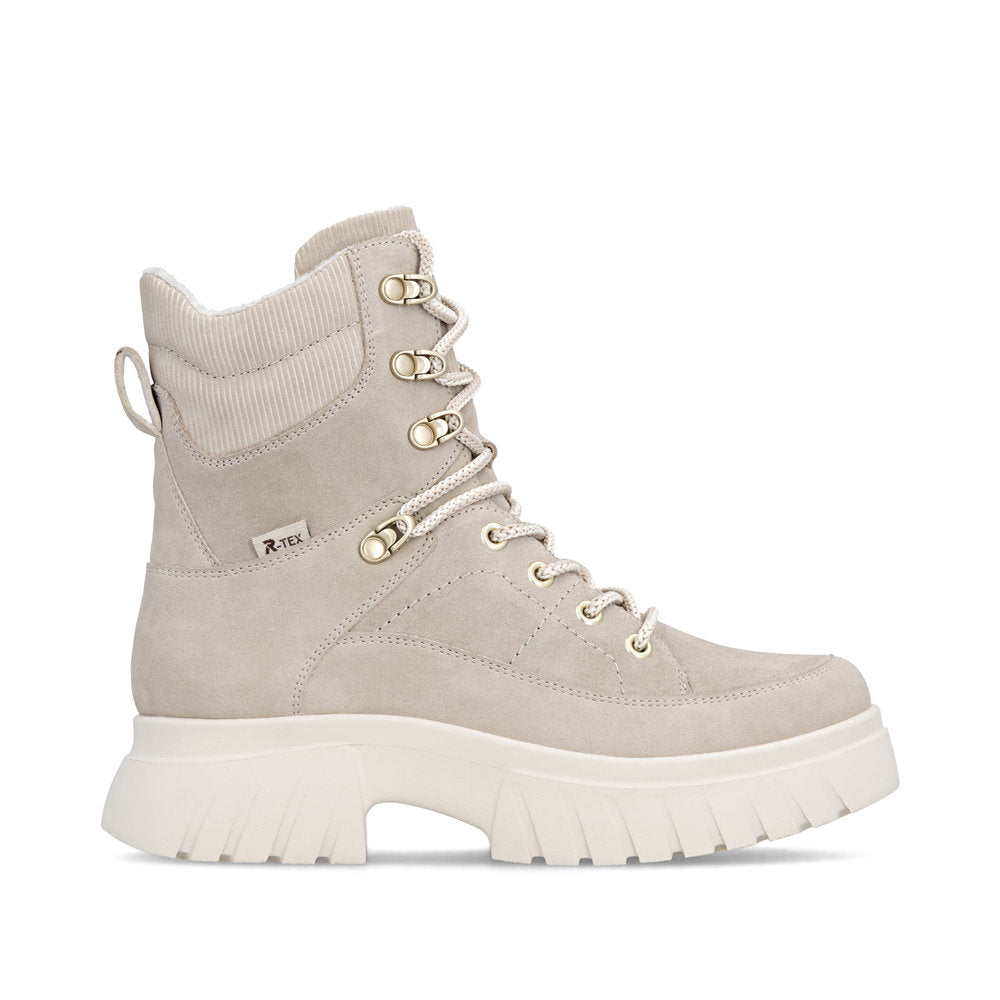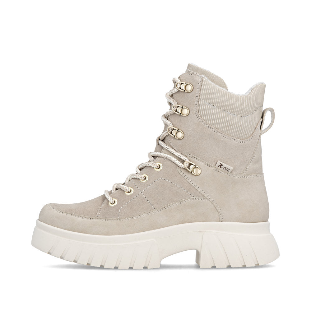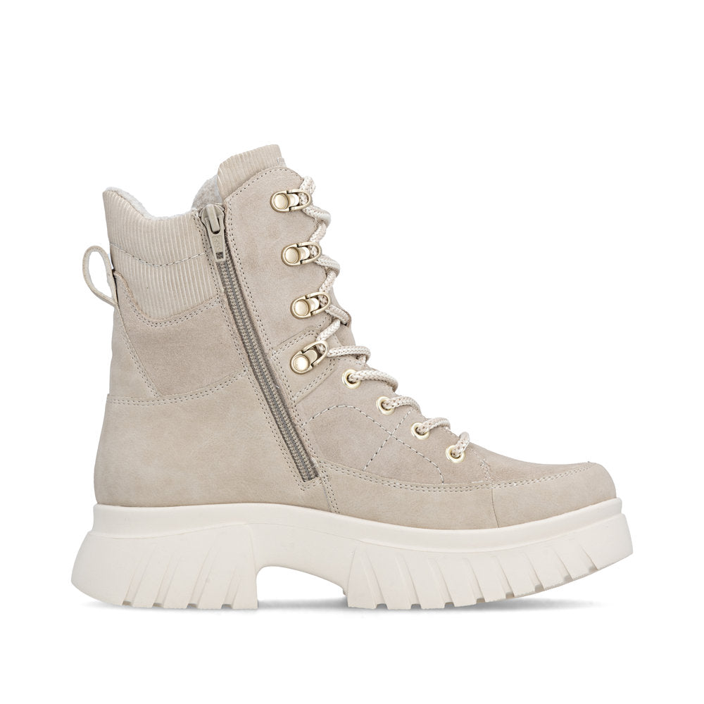 Ces bottes motardes Rieker beige clair sont fabriquées en cuir synthétique de qualité. Leur membrane RiekerTEX respirante est dotée d'un effet déperlant. Leur fermeture éclair et leurs lacets sur le dessus permettent un enfilage et un retrait faciles et rapides. Leur semelle intérieure rembourrée et amovible offre un amorti optimal. Leur doublure en velours léger assure un ajustement parfait grâce à leur largeur confortable.
