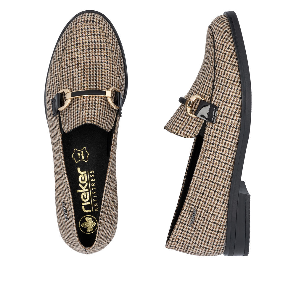 La mode rencontre la fonctionnalité. Ces mocassins Rieker beiges allient design tendance, confort optimal et fonctionnalité. Leurs élastiques facilitent l'enfilage. Leur motif à carreaux tendance attire tous les regards. Leur semelle antidérapante empêche les glissements et leur semelle de recouvrement est ultra-souple. Un véritable coup de cœur !
