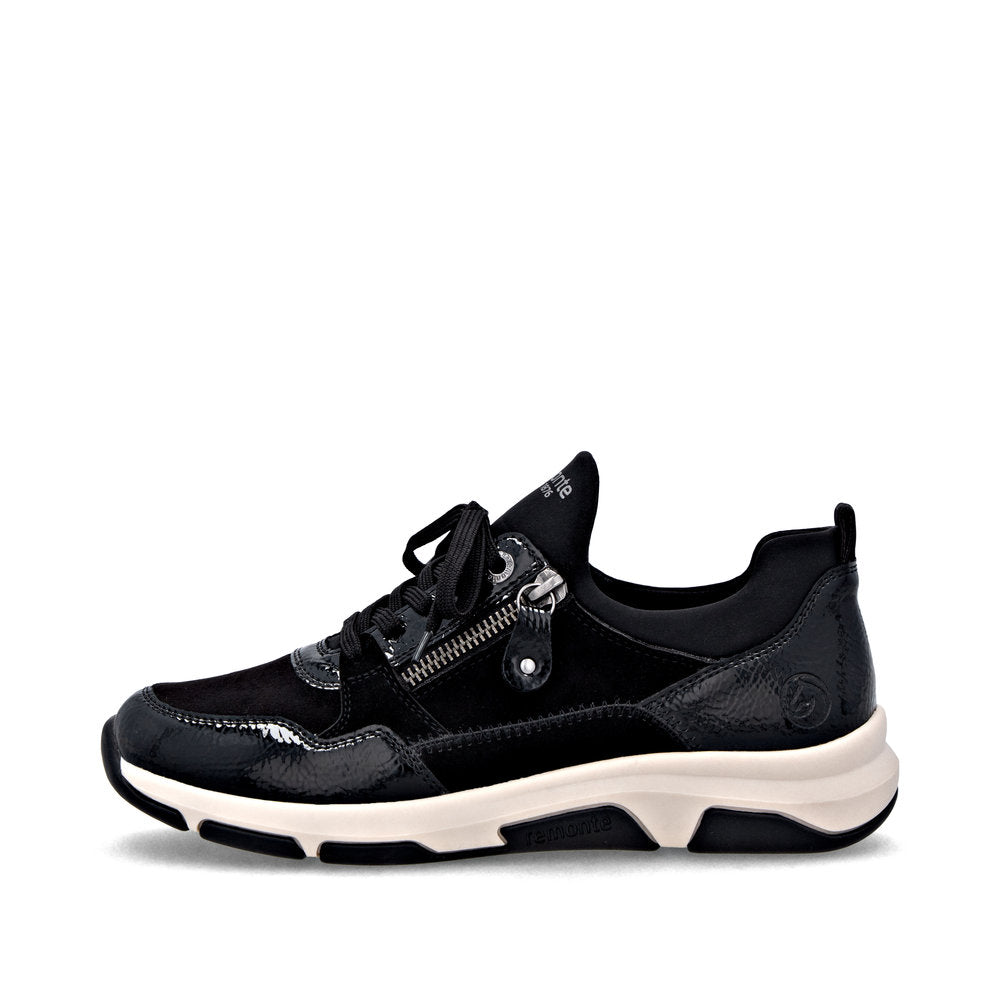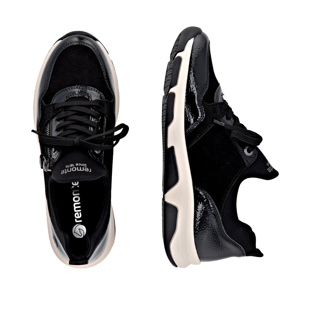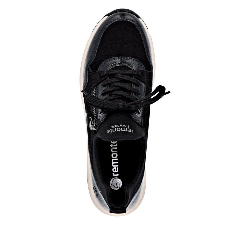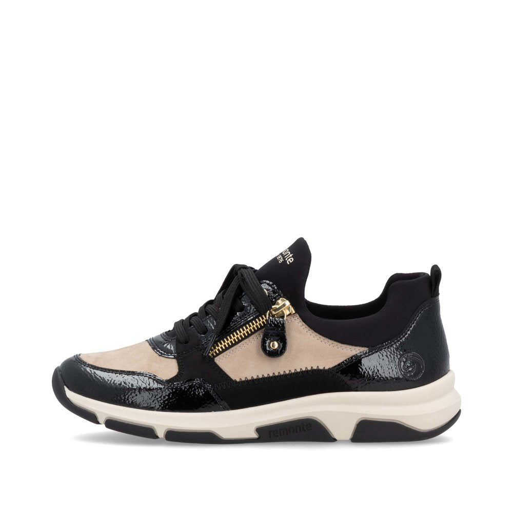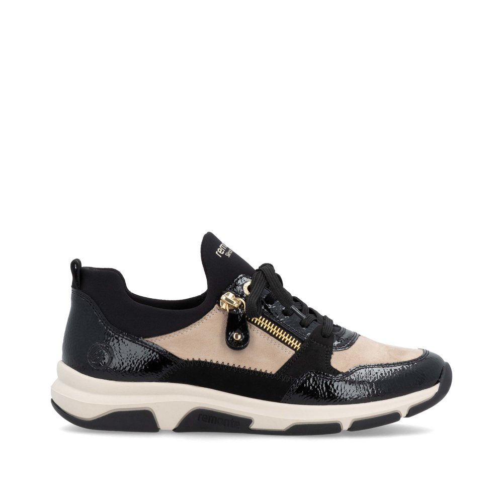 Style et confort vegan ! Ces chaussures Remonte noires et beiges respirent la féminité. Les bandes élastiques assurent un ajustement parfait. La semelle adhérente et légère ainsi que la semelle intérieure rembourrée et amovible offrent un confort optimal. La largeur confort offre plus d'espace. À vous de jouer !