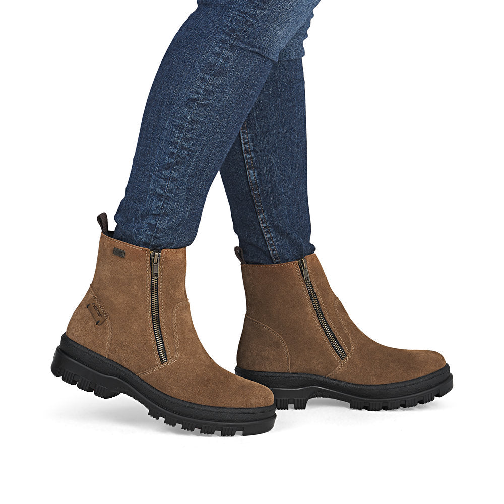 Élégantes toute la saison ! Ces bottines Rieker marron clair décontractées en daim sont simples et pratiques. La fermeture éclair permet de les enfiler très rapidement. La semelle adhérente assure une bonne adhérence en toutes circonstances. La semelle intérieure amovible offre confort et fonctionnalité au quotidien. La technologie Flip-Grip équipe ces chaussures de crampons dépliables pour une bonne adhérence sur les surfaces glissantes, tandis que la membrane déperlante offre une protection optimale contre l'humidité. Grâce à leur doublure douce et chaude, ces chaussures sont parfaitement équipées pour affronter le froid. Fonctionnelles et tendance, elles affronteront le froid !