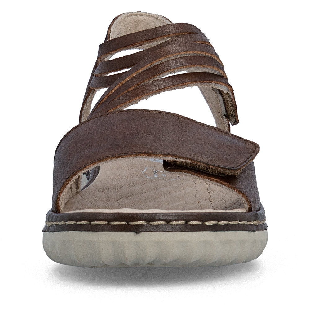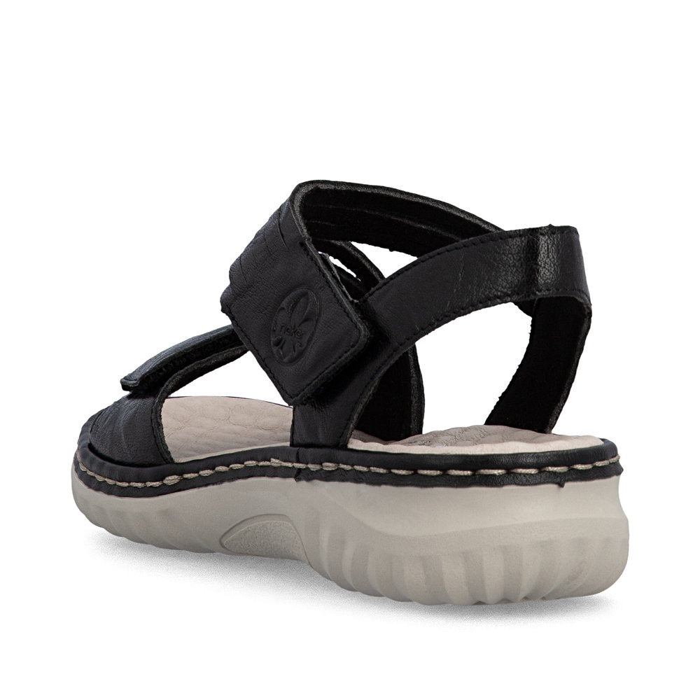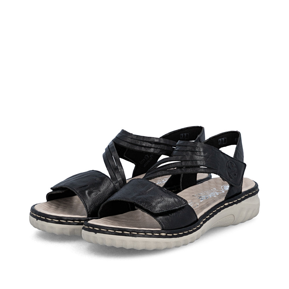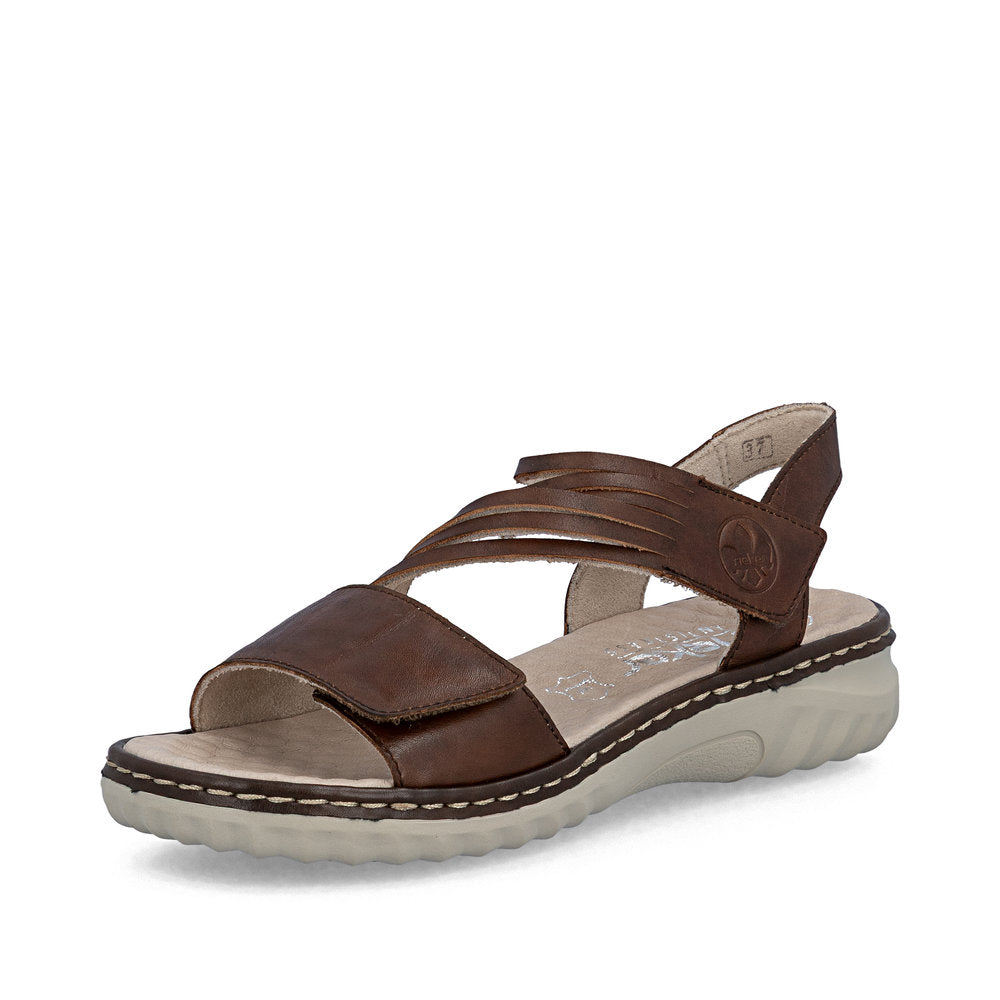 Style et confort : des alliés pour la vie ! Ces sandales compensées jaunes Rieker en cuir lisse séduisent par leur design moderne et leur confort exceptionnel. Grâce à leur construction cousue, ces chaussures sont particulièrement résistantes et flexibles. La fermeture auto-agrippante permet un enfilage très rapide. La semelle compensée est à la fois amortissante et légère, offrant un double bien-être à chaque pas. La semelle à picots est également antifatigue et massante. De plus, le chaussant étroit E 1/2 offre un maintien supplémentaire. Effet secondaire agréable : vous gagnez quelques centimètres !