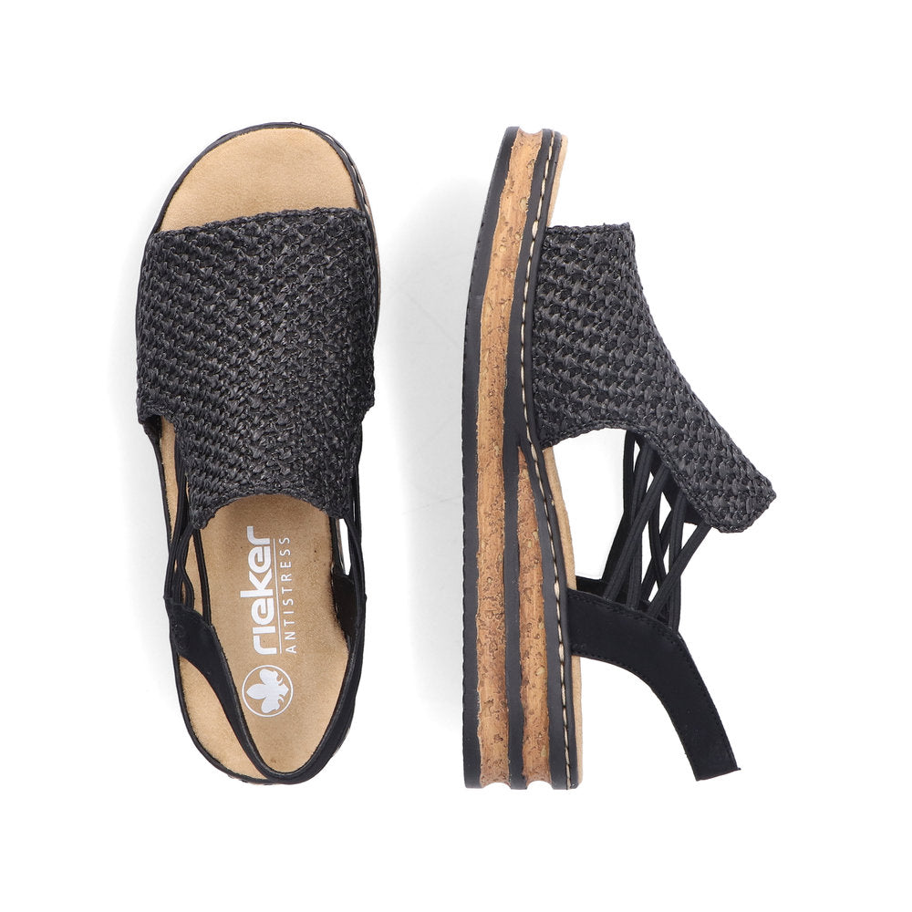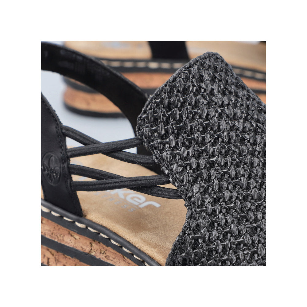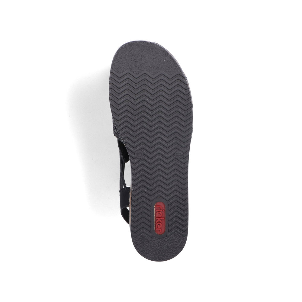 Un accessoire de mode incontournable ! Ces sandales compensées noires Rieker offrent un confort exceptionnel. Leur construction cousue leur confère une grande résistance et une souplesse incomparable. L’élastique facilite grandement l’enfilage et le retrait. La semelle plateforme légère et amortissante assure un confort optimal à chaque pas. Autre atout : la semelle extérieure ultra-douce. De plus, leur coupe étroite offre un maintien accru. Tout simplement parfaites !