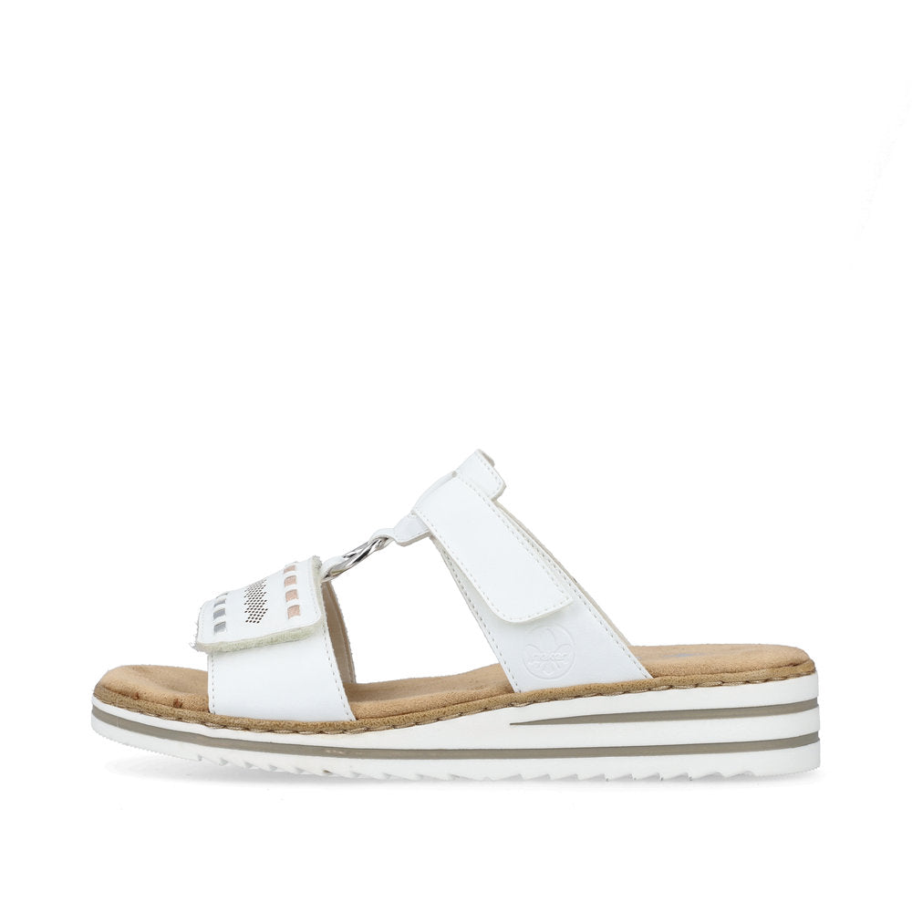 Un confort optimal à chaque pas ! Ces mules blanches Rieker vous plongeront instantanément dans l'ambiance estivale. Confectionnées selon la technique traditionnelle cousue-collée, elles offrent une robustesse et une souplesse exceptionnelles. La double fermeture auto-agrippante permet un enfilage rapide et un maintien parfait. Les détails tressés tendance apportent une touche d'originalité. La semelle intérieure légère et amortissante, dotée d'un talon compensé, garantit un confort de marche optimal. De plus, la semelle extérieure est ultra-douce. Enfin, la coupe étroite offre un soutien accru. Tout ce dont vous rêvez dans une seule chaussure !