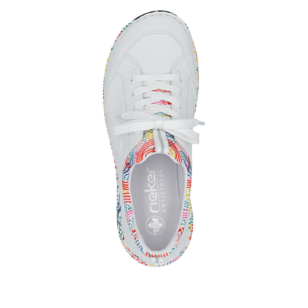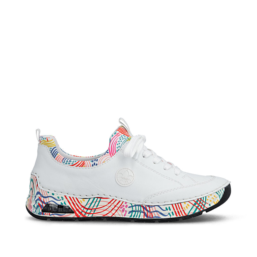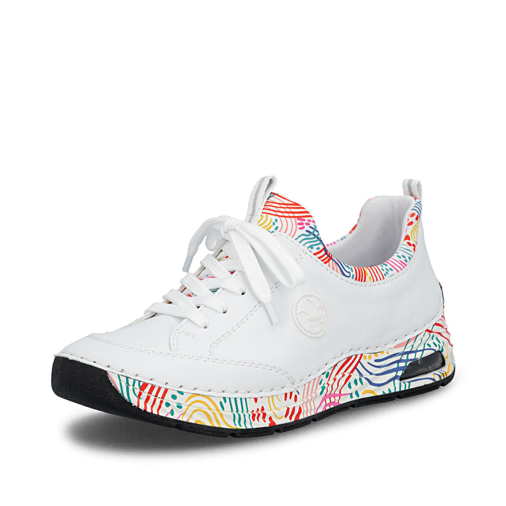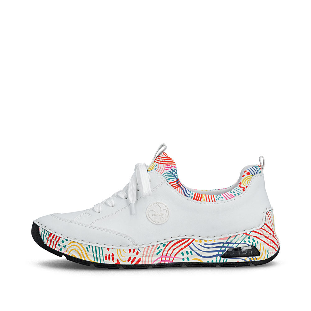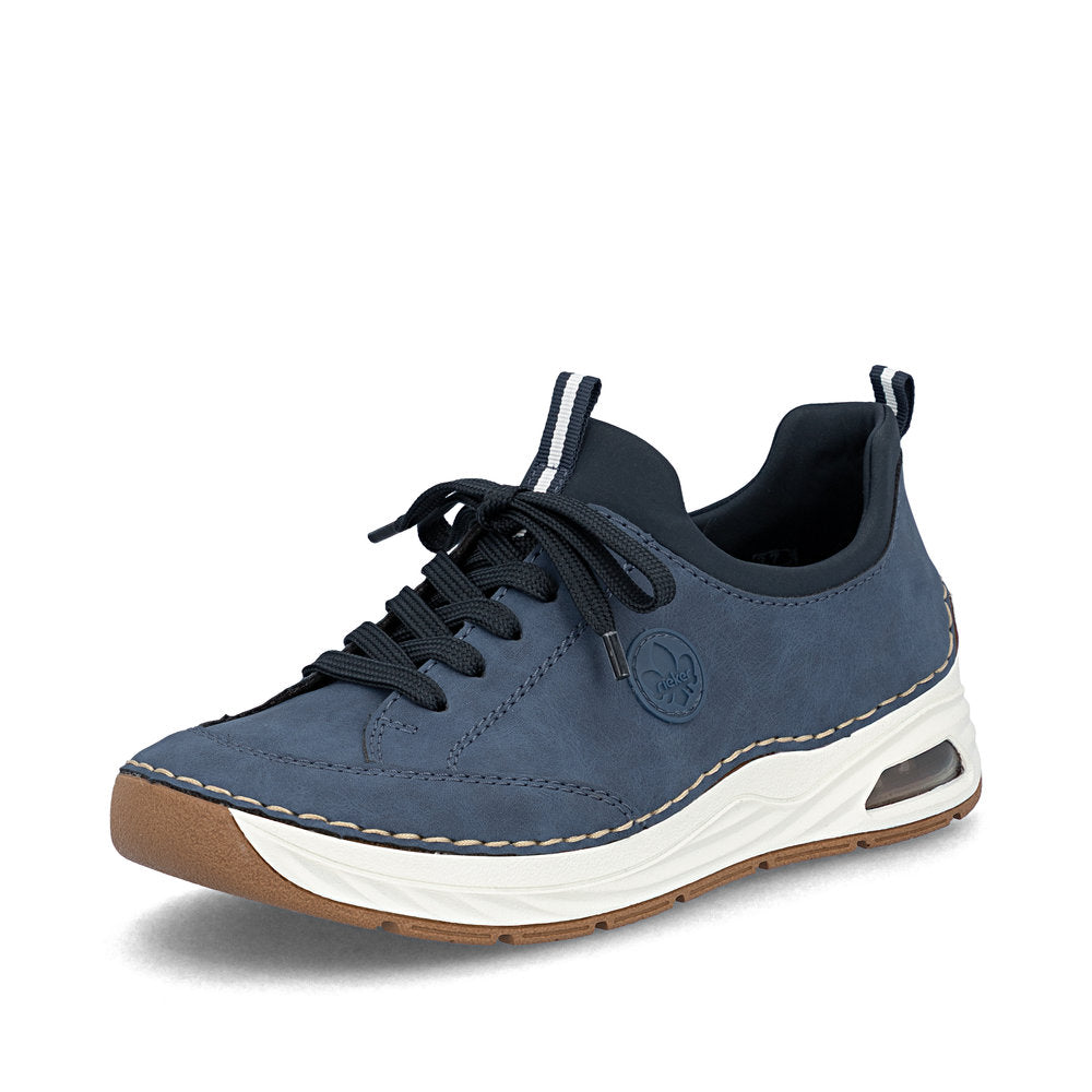 On the fashion radar! You can combine these blue Rieker slippers with countless looks both for everyday wear and leisure! This shoe was made using the traditional stitchdown technique, which provides excellent robustness and flexibility. Thanks to the elastic band and the elastic shaft collar, putting on this shoe is child's play. The shock-absorbing and light sole with wedge heel offers lasting comfort – even on long days. In addition, the cover sole is extra soft. The Rieker Air window in the sole provides a fresh look and at the same time ensures a shock-absorbing effect. All in all, the perfect blend of style and comfort!