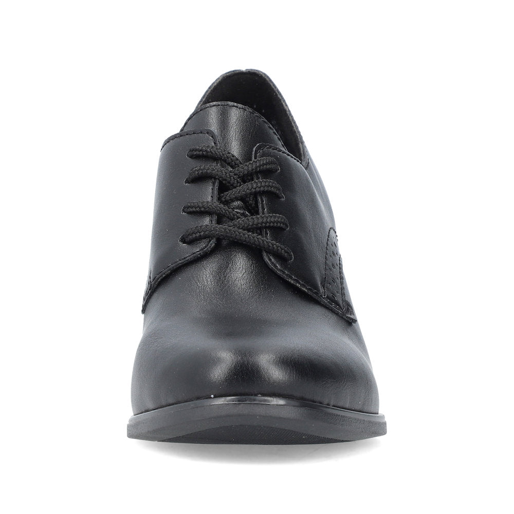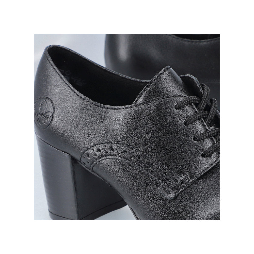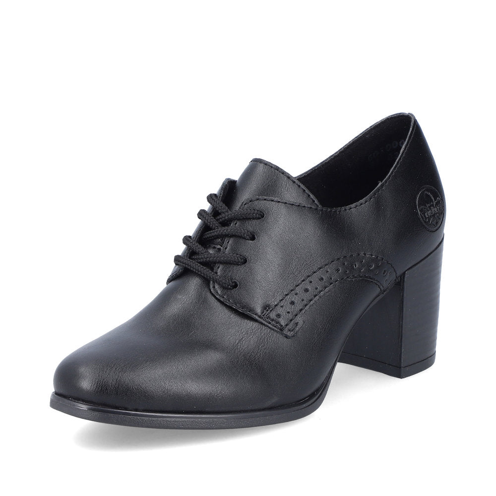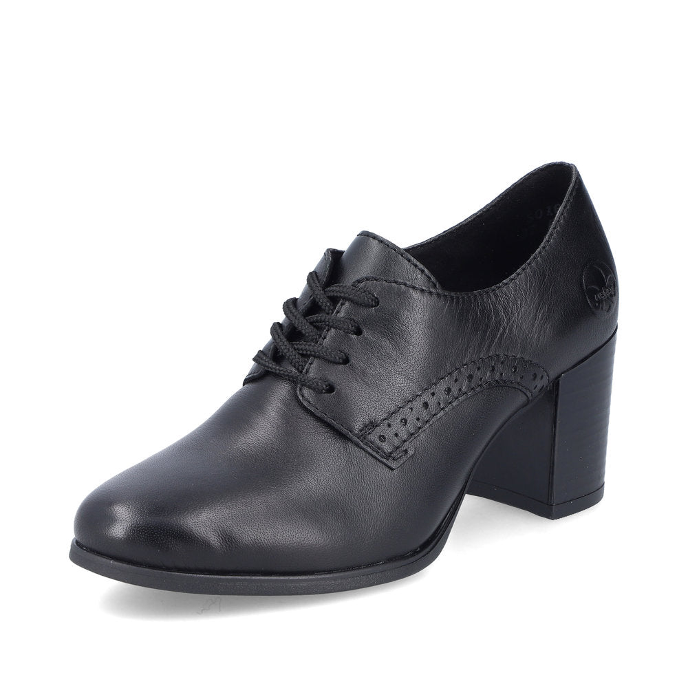 Allrounder! These matt black Rieker slippers made of smooth leather impress with a classic design and high comfort. The lacing gives the shoe the perfect fit on the foot. The sole with block heel is grippy and ensures good traction at all times. In addition, the cover sole is extra soft. Just slip into it and feel good!