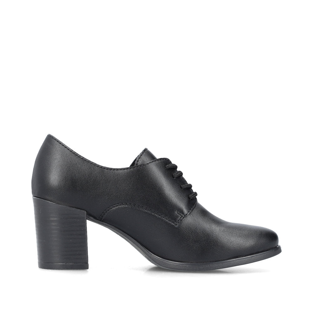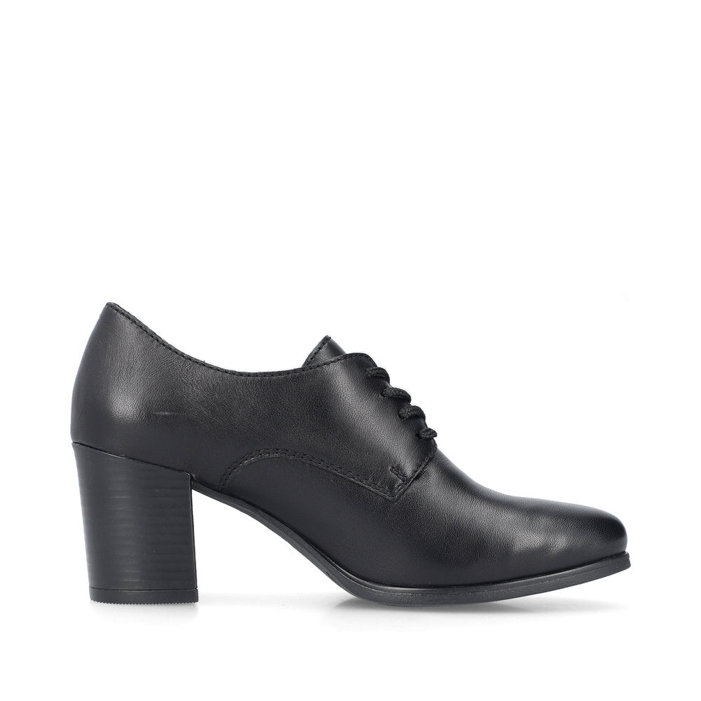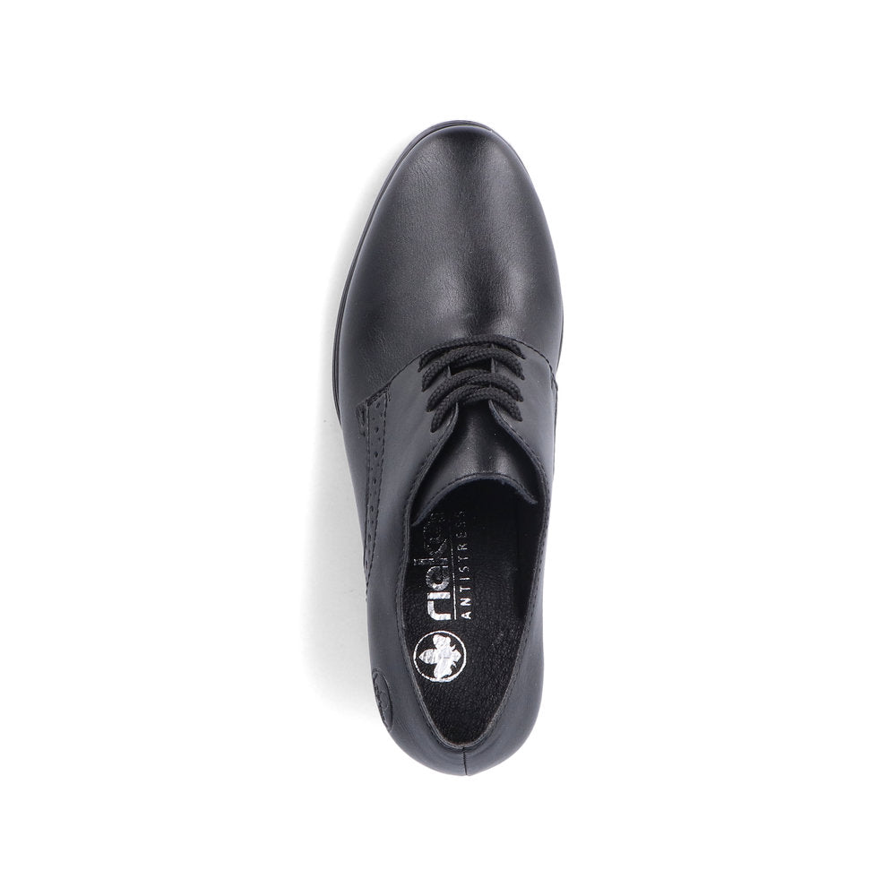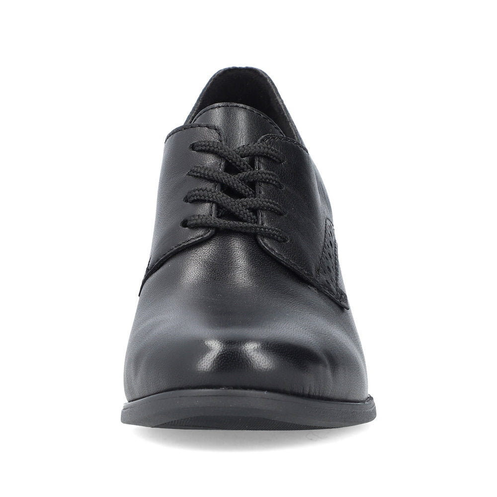 Allrounder! These matt black Rieker slippers made of smooth leather impress with a classic design and high comfort. The lacing gives the shoe the perfect fit on the foot. The sole with block heel is grippy and ensures good traction at all times. In addition, the cover sole is extra soft. Just slip into it and feel good!