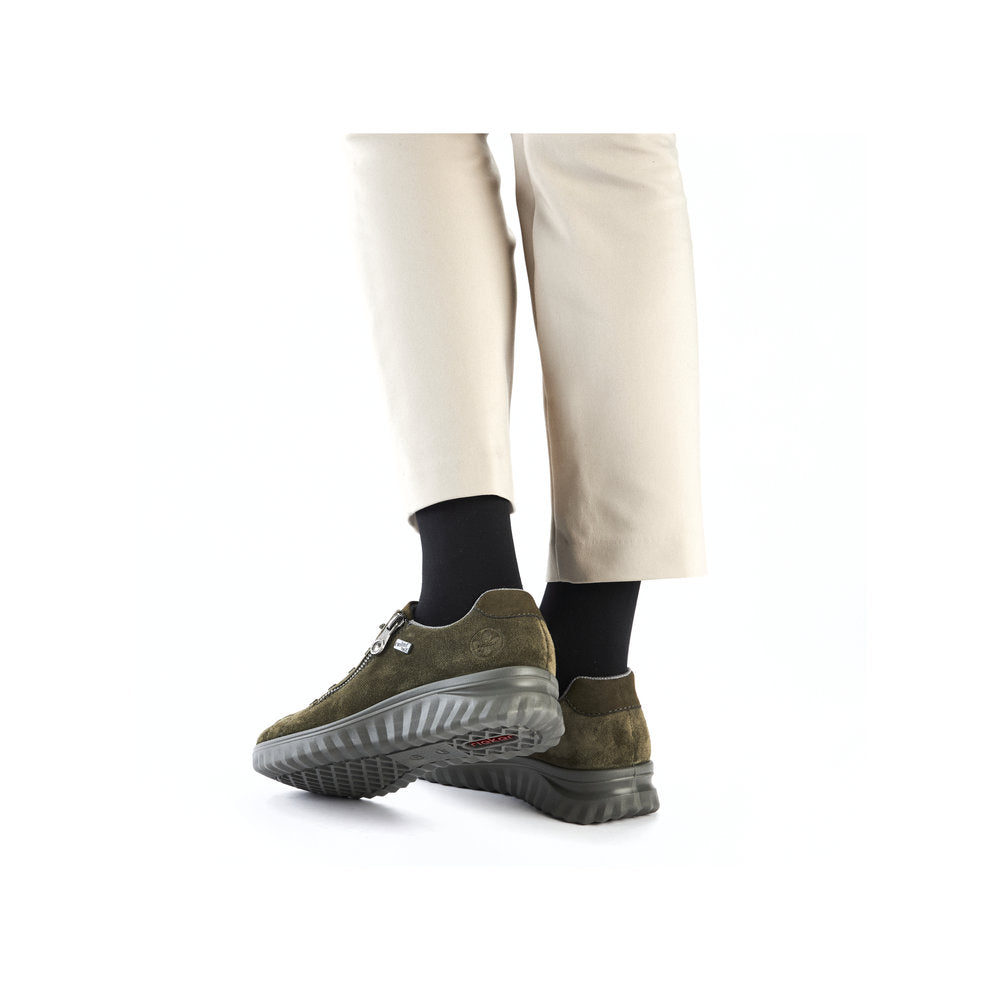 Stylish on the road! These reed green Rieker lace-up shoes made of suede leather impress with a classic design and high comfort. The lacing complements the zipper for functionality and comfort. The light and shock-absorbing sole additionally pampers the feet at every step. The lace-up shoe has a padded and removable insole, which is a captivating comfort feature. Thanks to the water-repellent RiekerTEX technology, your feet will stay dry in all weathers. Wait for what?
