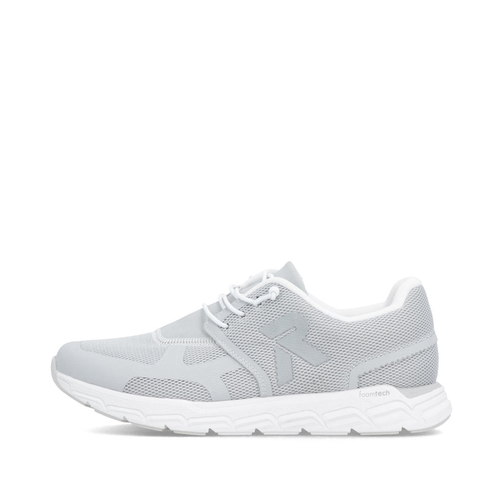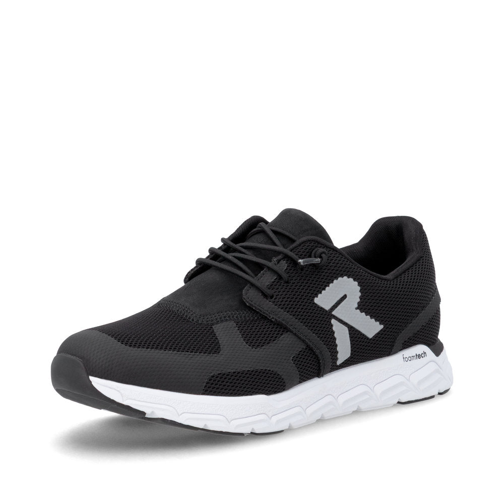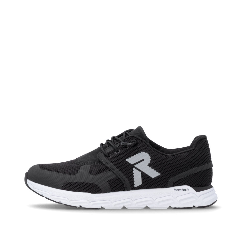 Ces baskets basses bleues Rieker sont confectionnées en textile de qualité. Ce modèle est disponible en tailles homme et femme. Faciles et rapides à enfiler grâce au laçage élastique. La semelle extérieure en EVA/caoutchouc, ultra-légère et flexible, offre une vitesse et une agilité maximales. La semelle intérieure MemoCup rembourrée et amovible assure un déroulement dynamique du talon aux orteils. La largeur confortable garantit un chaussant parfait.