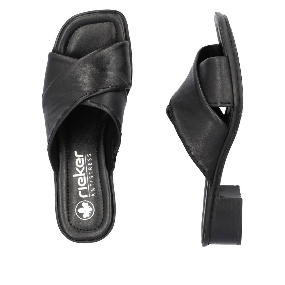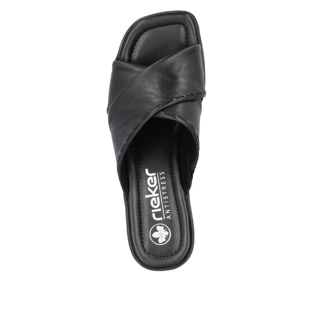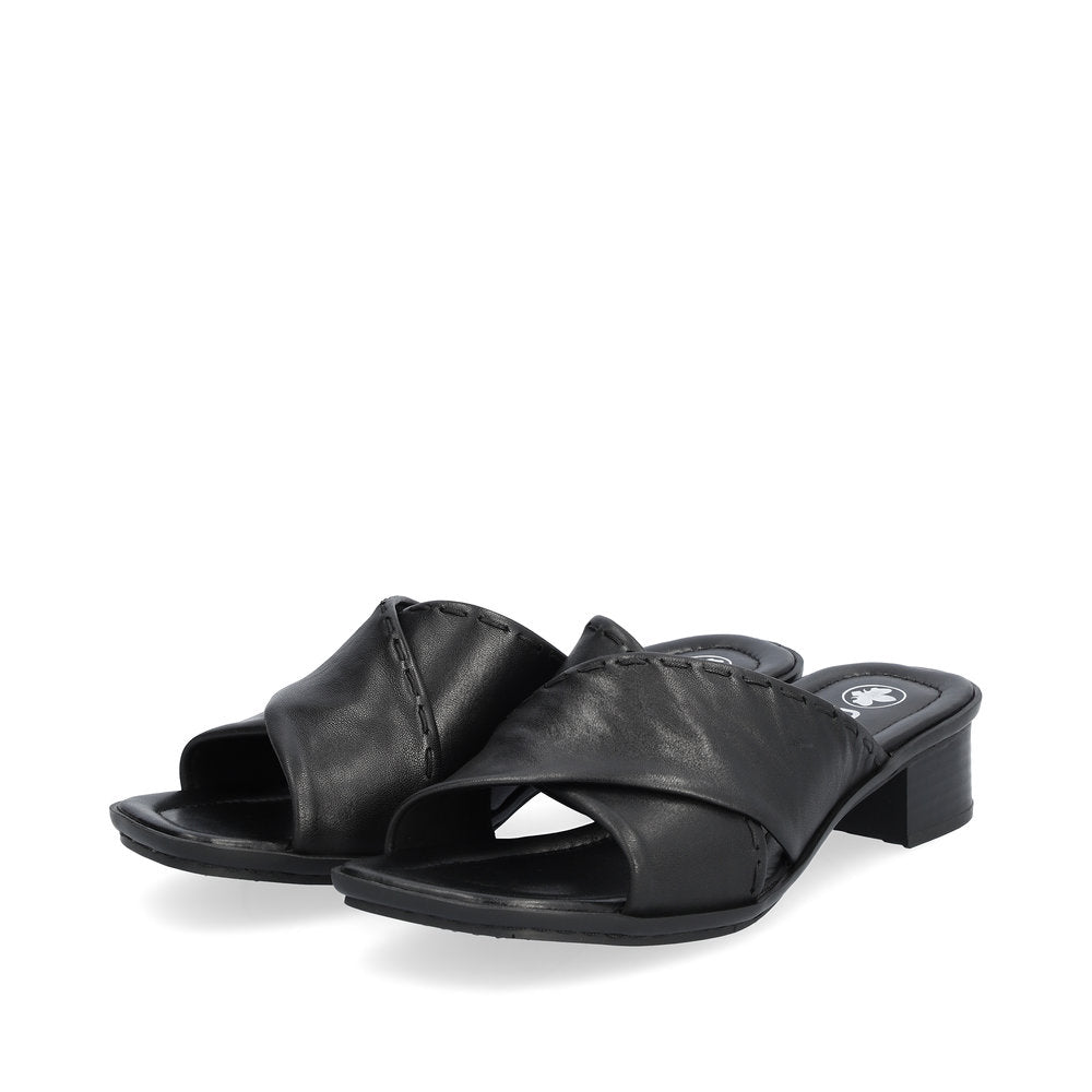 Été, soleil, chaussures sublimes ! Ces mules noir asphalte de Rieker sont fabriquées en cuir lisse et impressionnent par leur design moderne et leur confort exceptionnel. Sans fermeture, elles s'enfilent en un clin d'œil. Leur semelle légère et amortissante offre un confort optimal. Grâce à leur chaussant E 1/2 étroit, elles sont parfaitement ajustées sans comprimer. Bien-être garanti !