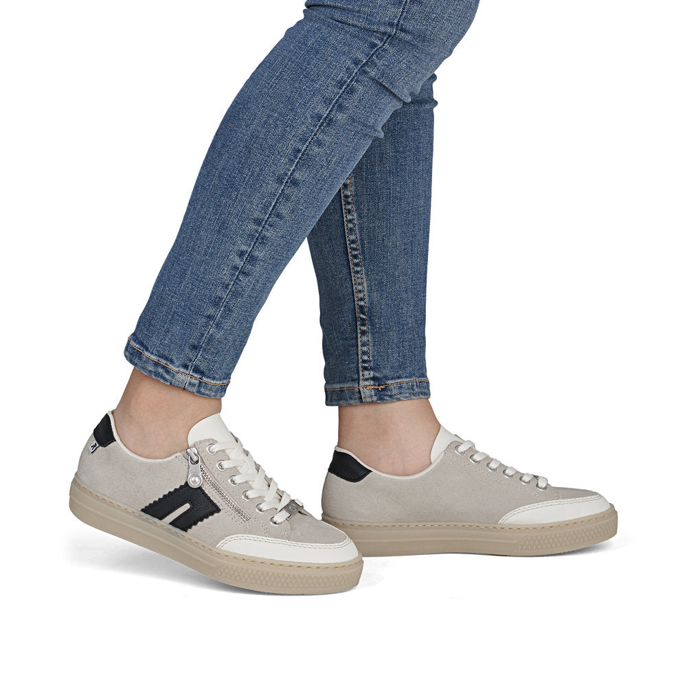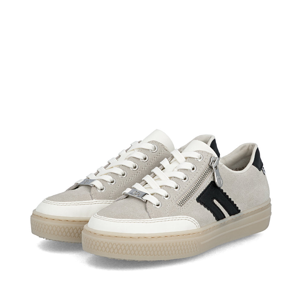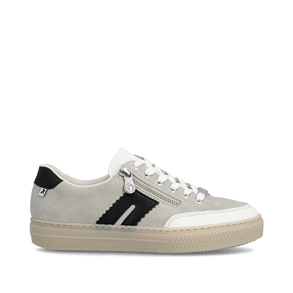 Urban and modern. These grey Rieker low-top sneakers made of suede leather are comfortable companions. The traditional stitchdown construction makes the shoe particularly flexible and robust and ensures a great fit. In addition to the lacing, this shoe is equipped with a zipper that provides optimal support. With the grippy platform sole, sure-footed walking is a matter of course and the extra-soft MemoSoft cover sole is another plus. Put them on and feel good!