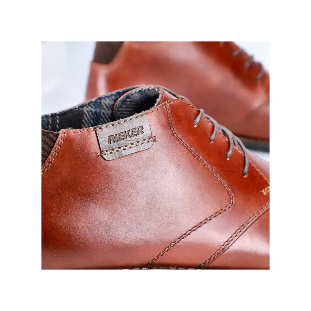 Effet « waouh » ! Rieker prouve une fois de plus qu'il est possible d'allier confort et look tendance avec ces chaussures à lacets marron renard en cuir lisse. De plus, le laçage assure un ajustement optimal. Le lettrage Rieker sur le côté complète harmonieusement le look. Grâce à la semelle profilée robuste, une marche sûre est un jeu d'enfant, tandis que la semelle de recouvrement interchangeable extra-souple assure un confort optimal. La largeur confort G 1/2 offre un confort optimal. Attention, chaussures favorites !