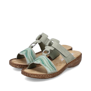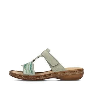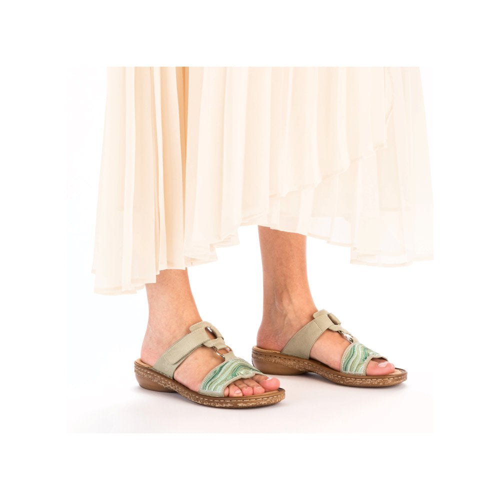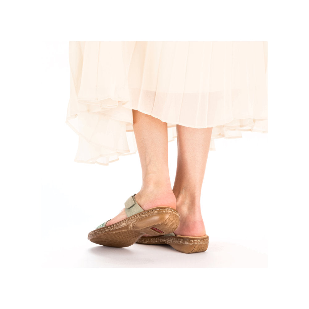 Pieds heureux, vie heureuse ! Ces mules vert clair vous mettront dans l'ambiance des vacances. Elles s'enfilent en un clin d'œil grâce à leur fermeture auto-agrippante. Leur motif abstrait leur confère un petit plus. La semelle légère et amortissante rend la marche encore plus agréable. De plus, leur chaussant étroit E 1/2 offre un maintien supplémentaire. Enfilez-les et sentez-vous bien !