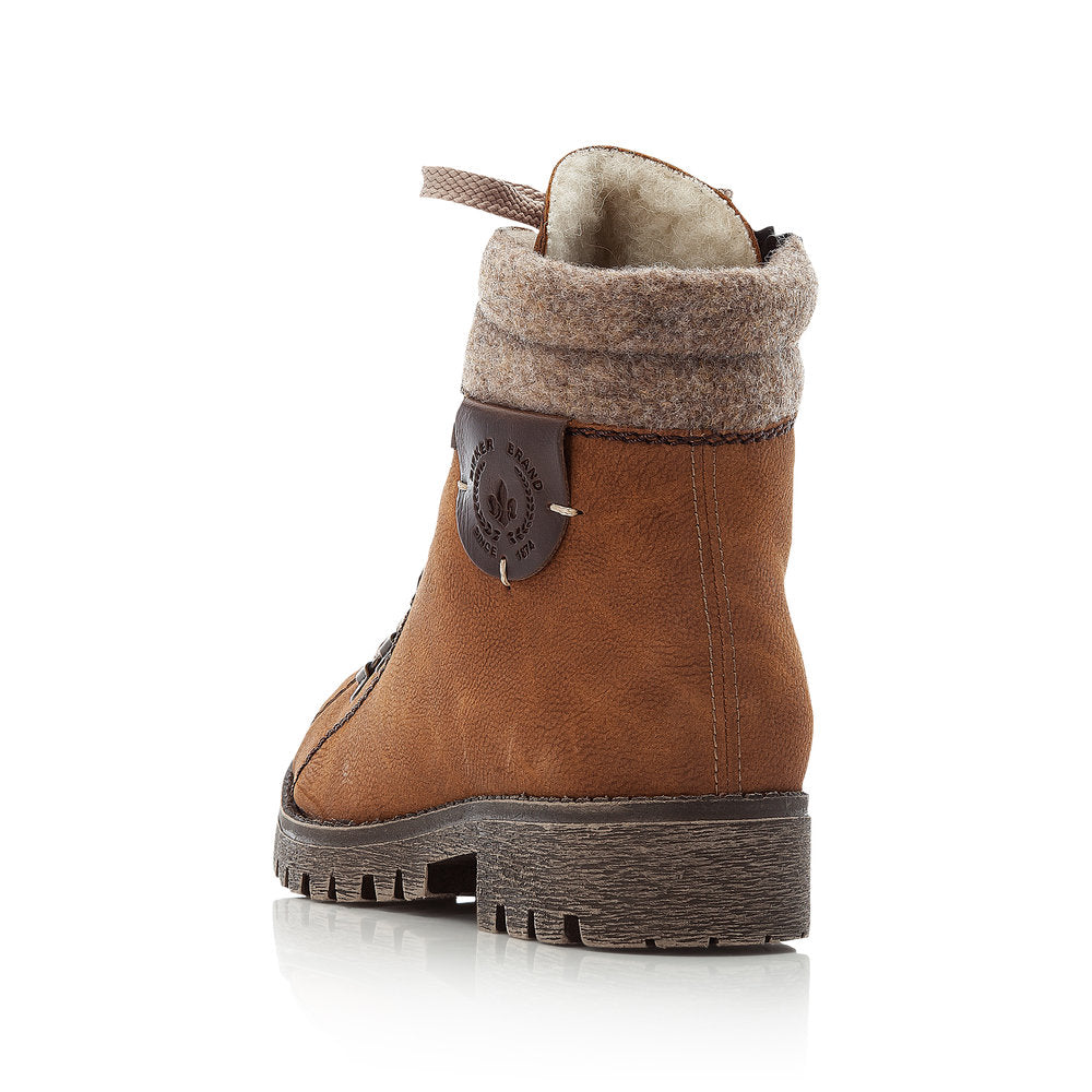Élégantes et confortables pour l'hiver ! Ces bottines à lacets Rieker marron foncé vous accompagneront avec style et décontraction. Fabriquées avec une construction cousue, elles sont robustes, flexibles et parfaitement ajustées. L'association astucieuse du laçage et de la fermeture éclair facilite l'enfilage et le retrait. Les œillets originaux complètent harmonieusement le look. La semelle adhérente assure une bonne adhérence à chaque pas. La membrane RiekerTEX déperlante protège vos pieds de l'humidité et du vent, tandis que la doublure douillette les garde au chaud longtemps. Un véritable coup de cœur !