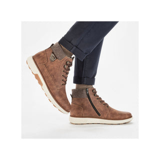 Dites adieu aux pieds froids ! Ces bottines à lacets Rieker marron cannelle offrent une grande liberté de mouvement tout en maintenant vos pieds en place. Malgré le laçage, la chaussure se ferme facilement grâce à la fermeture éclair. Le col de la tige aspect textile complète parfaitement son design moderne. La semelle, adhérente et légère, assure une bonne adhérence en toutes circonstances. La semelle intérieure rembourrée et amovible offre confort et fonctionnalité au quotidien. La largeur H supplémentaire offre une liberté de mouvement suffisante aux orteils. Vos pieds resteront au chaud toute la journée grâce à la doublure douillette et au sec grâce à la technologie RiekerTEX. Tout en un : le top !