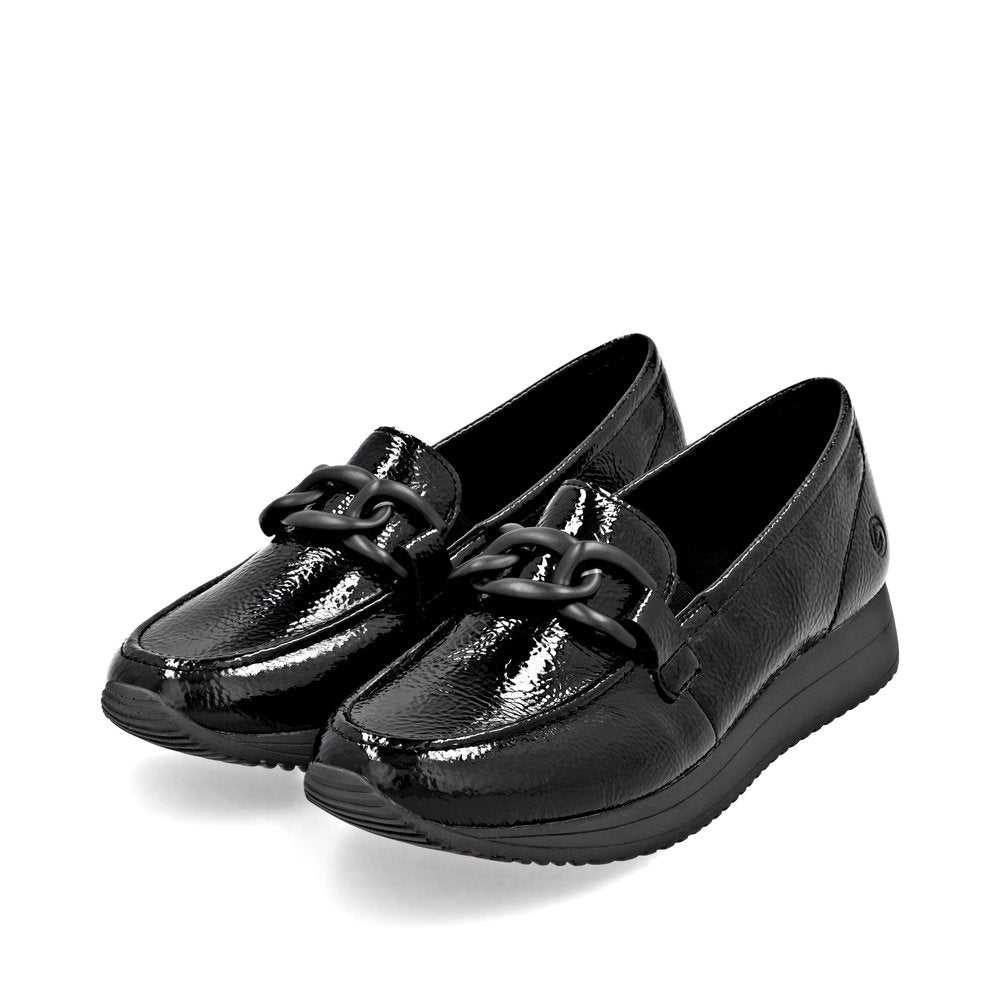 Confort parfait : ces mocassins noirs Remonte sont non seulement ultra stylés, mais aussi très confortables. Les élastiques facilitent l'enfilage. La chaîne décorative apporte une touche d'originalité à la chaussure. La technologie Lite 'n Soft, avec sa semelle ultra-légère et sa semelle intérieure rembourrée et amovible, assure un confort optimal. Ces mocassins sont dotés d'une doublure légère en microvelours. À vous de jouer !