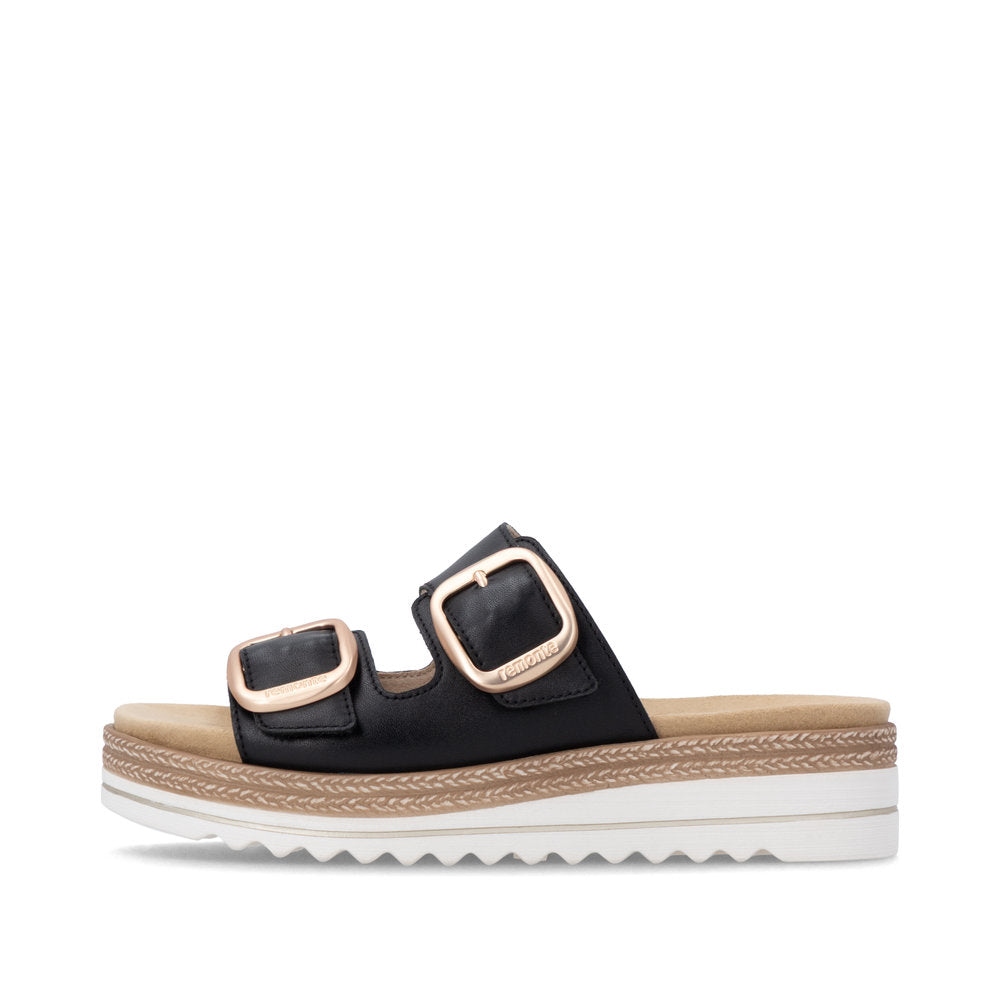 Place à la légèreté ! Ces mules noires en cuir lisse, à la pointe de la mode, s'enfilent en un clin d'œil grâce à leur double fermeture auto-agrippante. La boucle tendance apporte une touche de modernité. Grâce à la technologie éprouvée de la semelle intérieure amovible et souple, ces mules sont d'une légèreté et d'un confort exceptionnels. Disponibles également en grandes pointures. Aussi légères qu'une journée d'été.