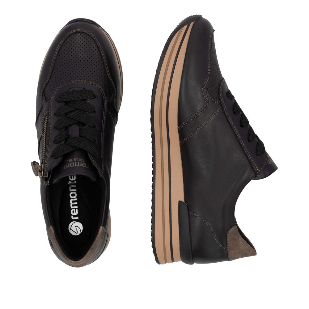 Plus de liberté de mouvement pour vos pieds ! Ces baskets basses blanches Remonte en cuir lisse feront battre le cœur des femmes soucieuses de la mode. L'association astucieuse du laçage et de la fermeture éclair garantit un ajustement parfait et un maintien optimal. Une semelle plateforme souple et particulièrement légère, ainsi qu'une semelle intérieure rembourrée et amovible, sont autant d'atouts de ces baskets. Grâce à leur largeur confortable, ces chaussures offrent non seulement suffisamment d'espace à l'avant-pied, mais sont également disponibles en grandes tailles. La doublure intérieure en microvelours respirant offre un confort longue durée. Le jackpot !