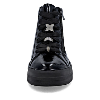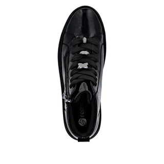 Le summum de la sneaker ! Ces baskets montantes noires Remonte en cuir verni sont un véritable concentré de polyvalence ! L'association astucieuse du laçage et de la fermeture éclair offre un maintien optimal et facilite l'enfilage et le déchaussage. Lite 'n Soft : une semelle intérieure rembourrée et amovible s'associe à une semelle extérieure ultra-légère. La largeur confort offre une liberté de mouvement suffisante pour les orteils. Grâce à la doublure légère en microvelours, le confort est garanti. Jackpot !