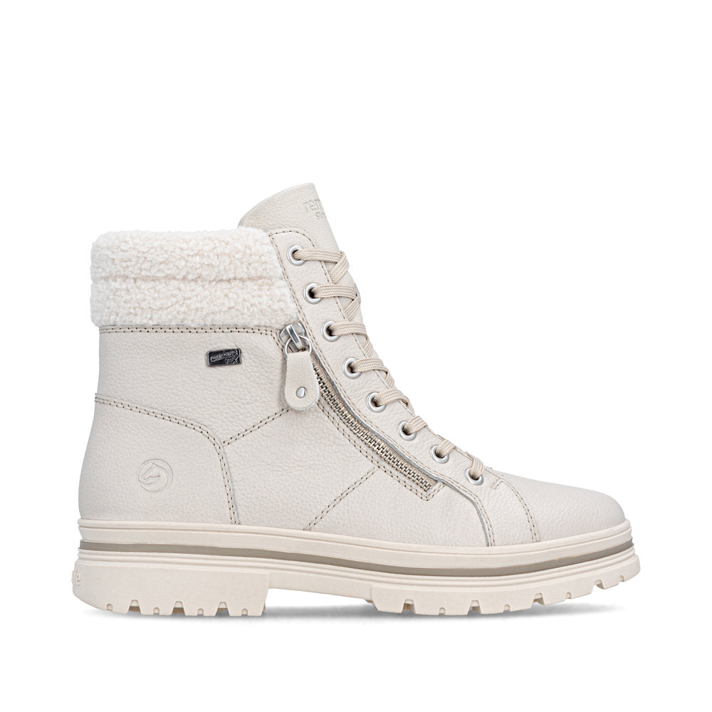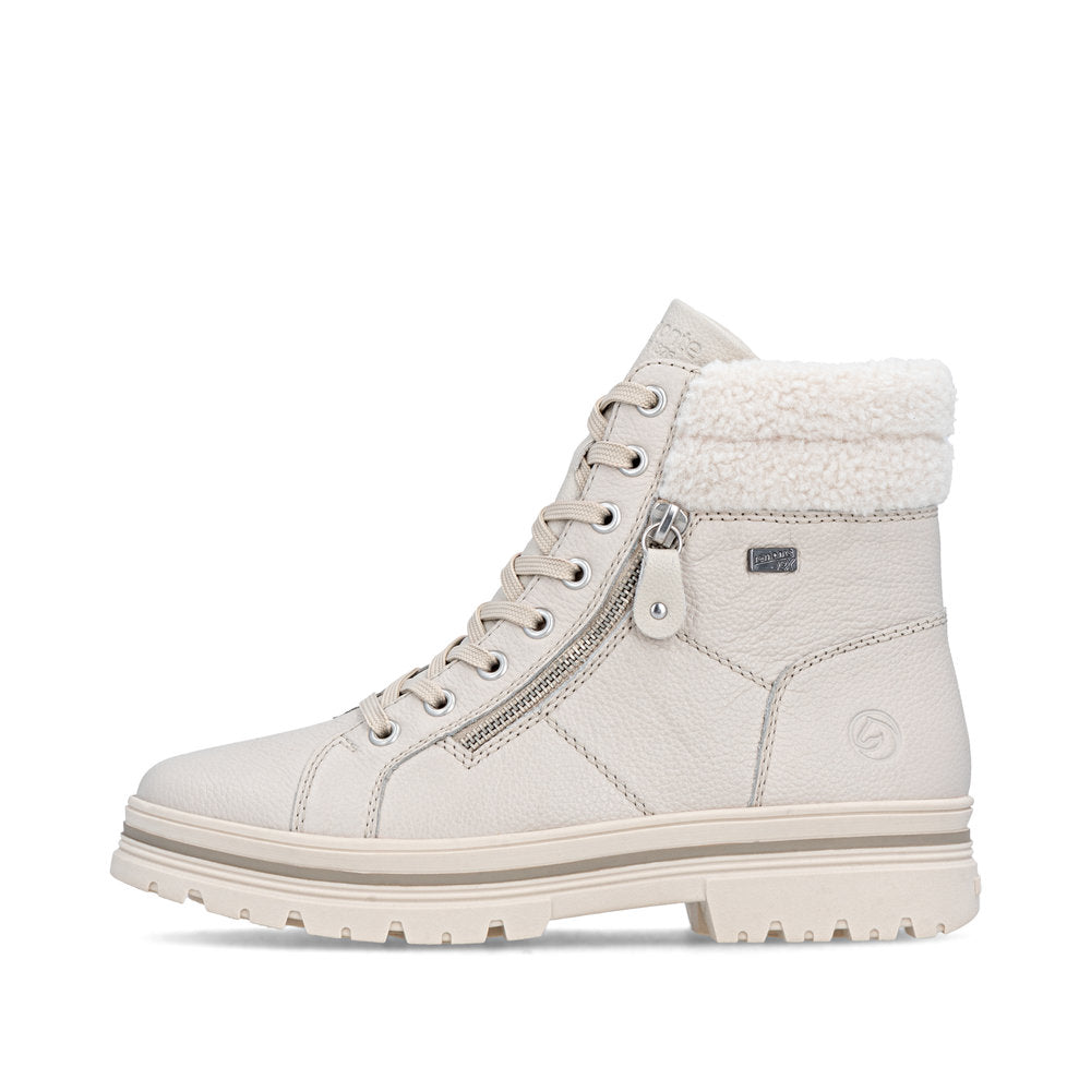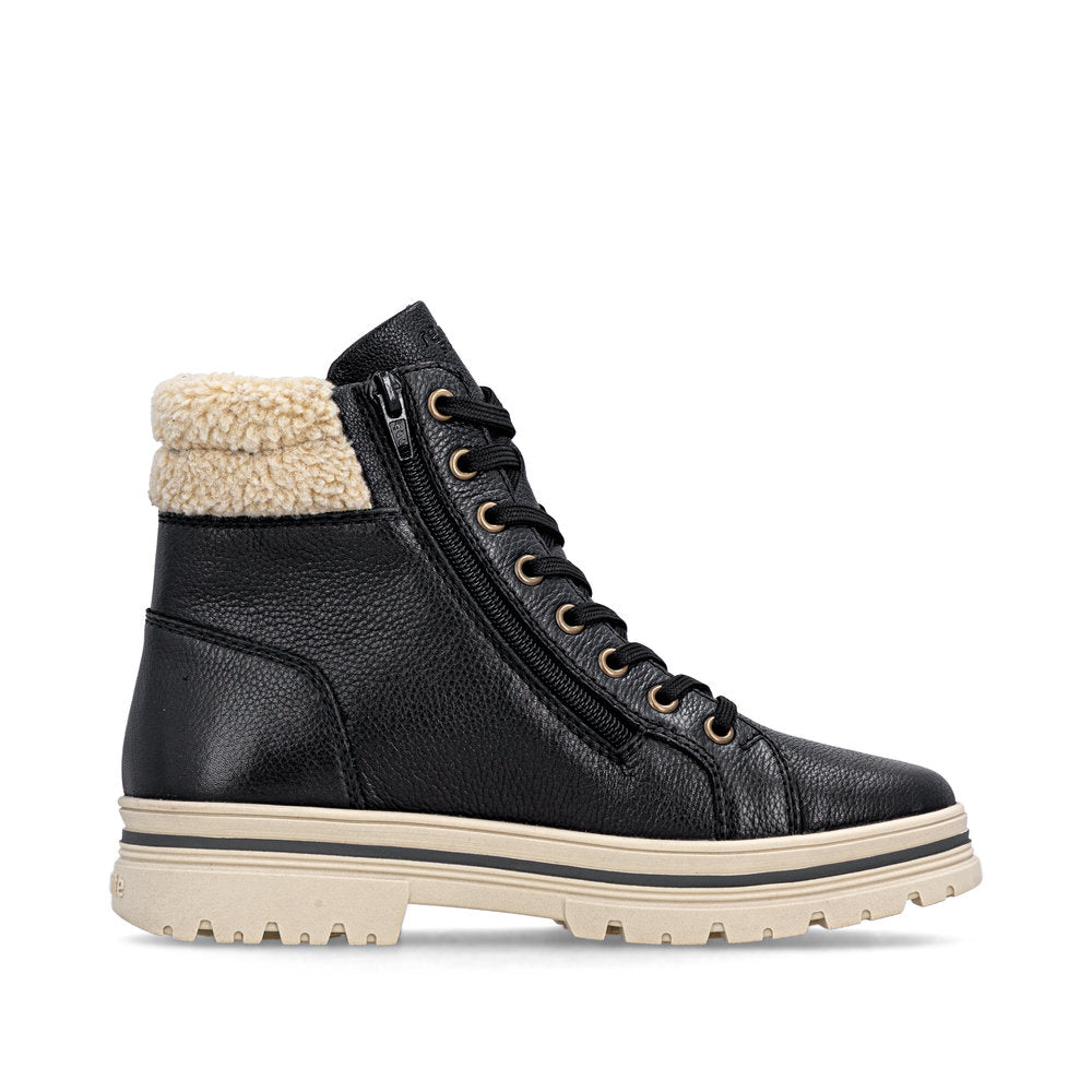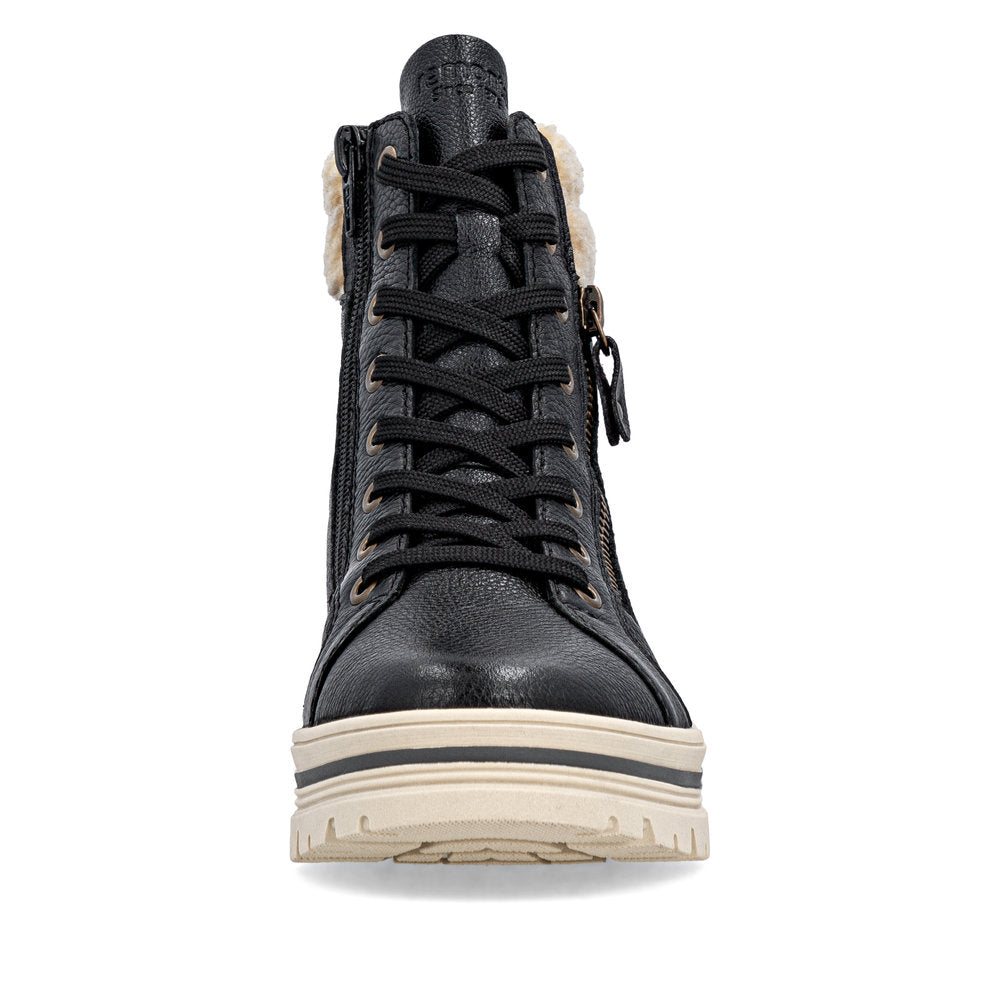 Les pieds froids n'ont aucune chance ! Ces bottines à lacets Remonte noires et beiges en cuir lisse vous accompagneront tout au long de la saison avec style et confort. L'association astucieuse du laçage et de la fermeture éclair offre un maintien optimal et facilite l'enfilage et le retrait. Le col en fourrure sur la tige attire tous les regards. La semelle adhérente et légère assure une bonne adhérence à chaque pas. La largeur confort offre une plus grande liberté de mouvement aux orteils. La tige déperlante protège de l'humidité et du vent, tandis que la semelle intérieure à effet thermique maintient la chaleur à l'intérieur de la chaussure. La laine vierge douillette et très chaude garde les pieds au chaud. Fidèle à la devise : le confort rencontre le style !