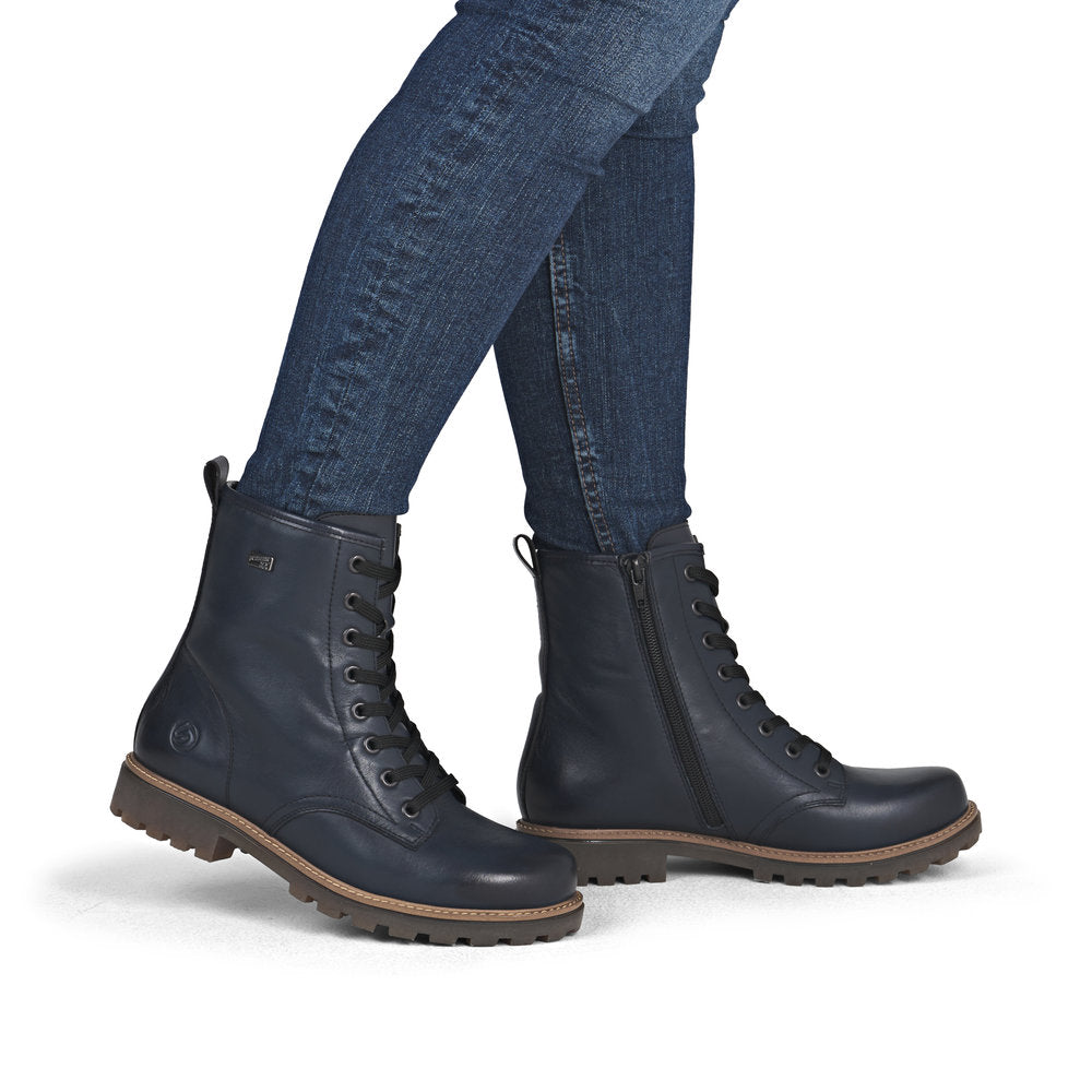 Un design moderne et confortable ! Ces bottines vertes Remonte à lacets en cuir lisse sont un véritable accroche-regard ! L'association astucieuse du laçage et de la fermeture éclair garantit un ajustement parfait et un maintien optimal. Une semelle adhérente et amortissante ainsi qu'une semelle intérieure rembourrée et amovible sont autant d'atouts de ce modèle. Grâce à sa largeur confortable, l'avant-pied est suffisamment spacieux. La membrane RemonteTEX protège de l'humidité et du vent. La doublure en microvelours est légère et respirante pour un confort optimal tout au long de la journée. C'est là que la bonne humeur entre en jeu !