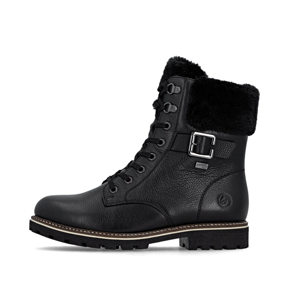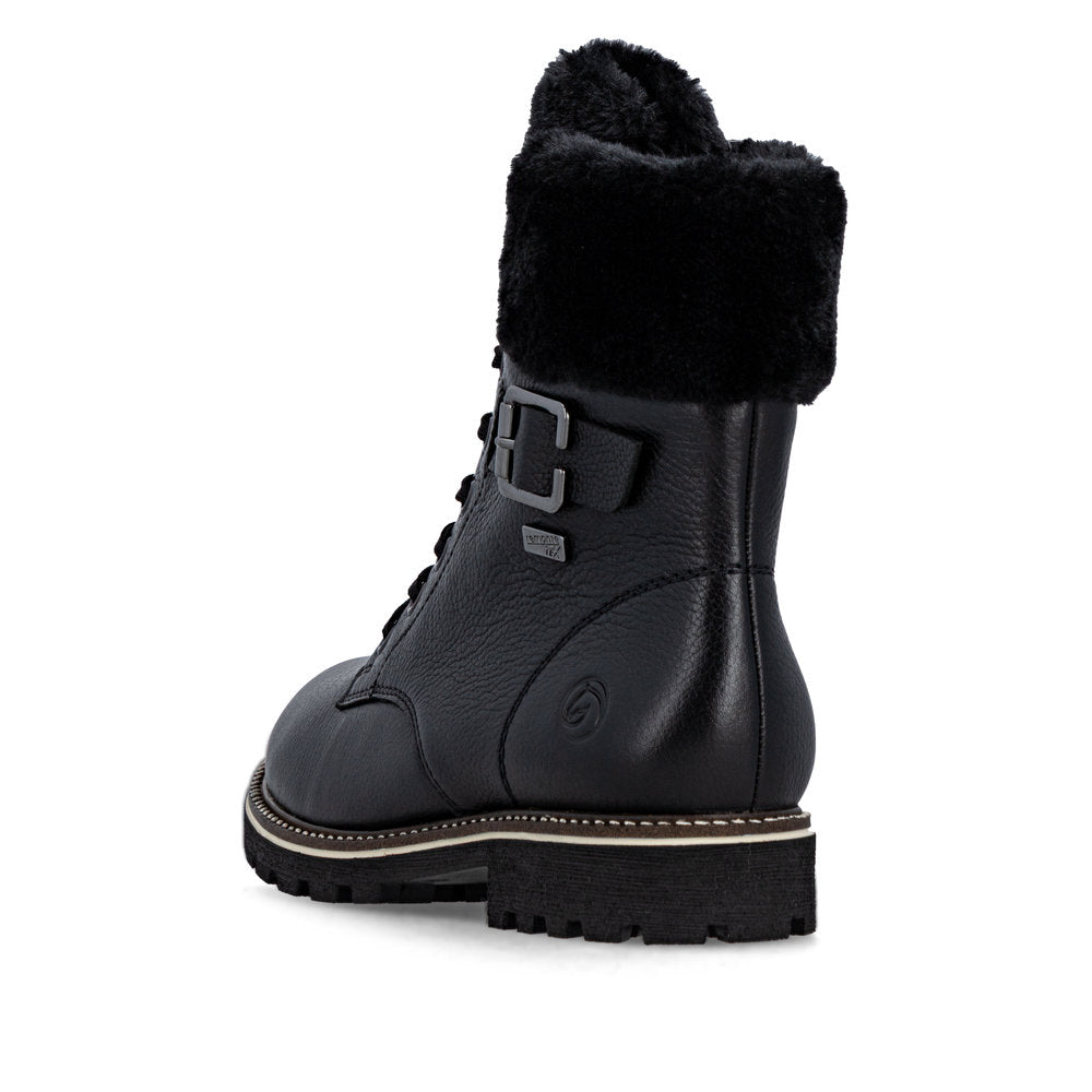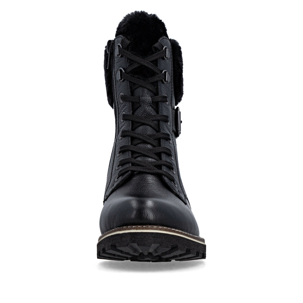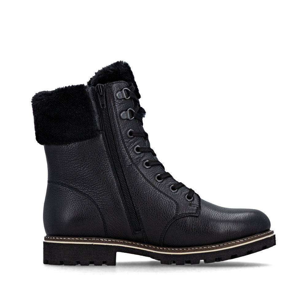 Les journées froides deviennent chaudes ! Ces bottines blanches Remonte à lacets en cuir lisse sont un véritable accroche-regard ! L'association astucieuse du laçage et de la fermeture éclair facilite l'enfilage et le retrait. Le col de la tige effet peluche est un détail appréciable. La semelle amortissante et flexible assure un bon maintien. La largeur confort offre plus d'espace aux pieds. La surface déperlante offre une protection optimale contre les intempéries et la semelle intérieure thermique protège du froid. Grâce à la fourrure d'agneau agréablement chaude et régulatrice d'humidité, cette chaussure est parfaite pour les températures froides. Difficile de faire plus confortable !