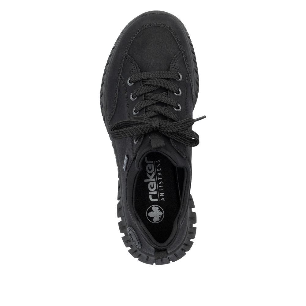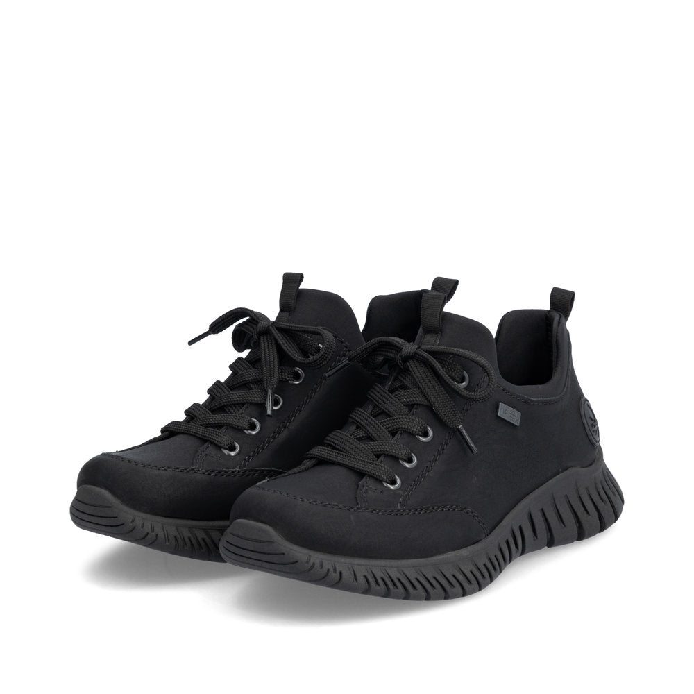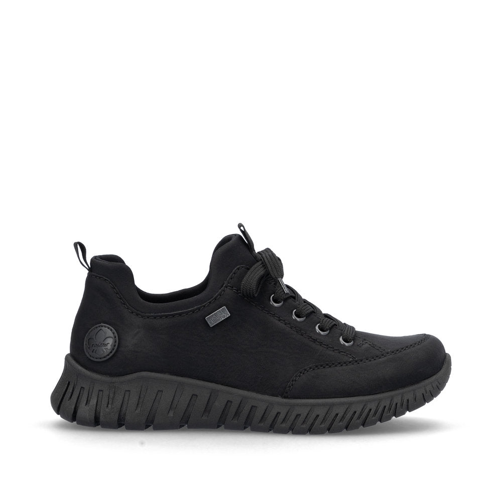 Un incontournable tendance ! Optez pour un confort optimal et un style ultime avec ces baskets basses Rieker noir graphite. Le col élastique de la tige permet un chaussage et un déchaussage rapides et faciles. Grâce à la semelle adhérente et légère, une marche sûre est un jeu d'enfant. La semelle intérieure amovible est un atout pratique et pratique. Ce modèle est taillé en largeur confort G. Grâce à la technologie RiekerTEX, ces baskets basses sont déperlantes et donc adaptées à tous les temps. Vos meilleures alliées pour la nouvelle saison !