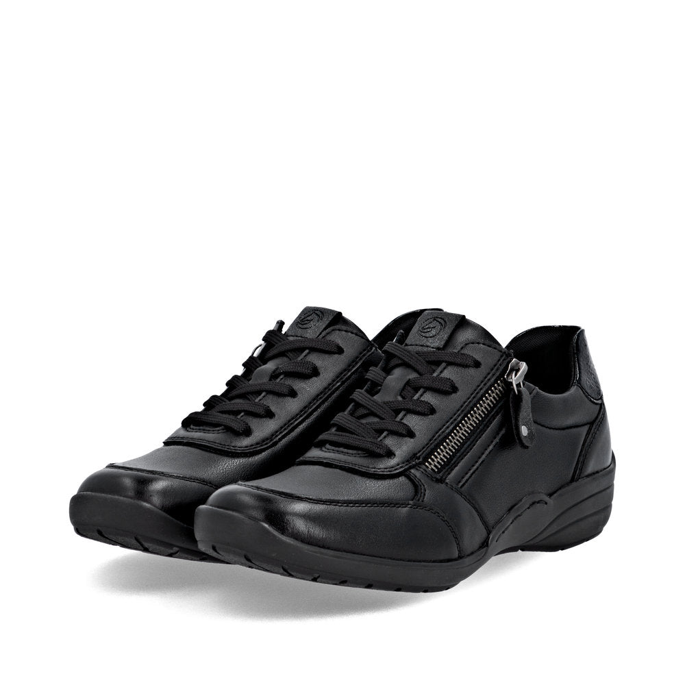 Élégantes et intemporelles, ces chaussures noires à lacets Remonte sont non seulement ultra-élégantes, mais aussi confortables. L'association astucieuse du laçage et de la fermeture éclair facilite l'enfilage et le retrait. La semelle intérieure rembourrée et amovible s'associe à une semelle légère et amortissante qui s'adapte parfaitement aux sols durs. Grâce à leur largeur supplémentaire, elles offrent suffisamment d'espace à l'avant-pied. Difficile de faire plus stylé !