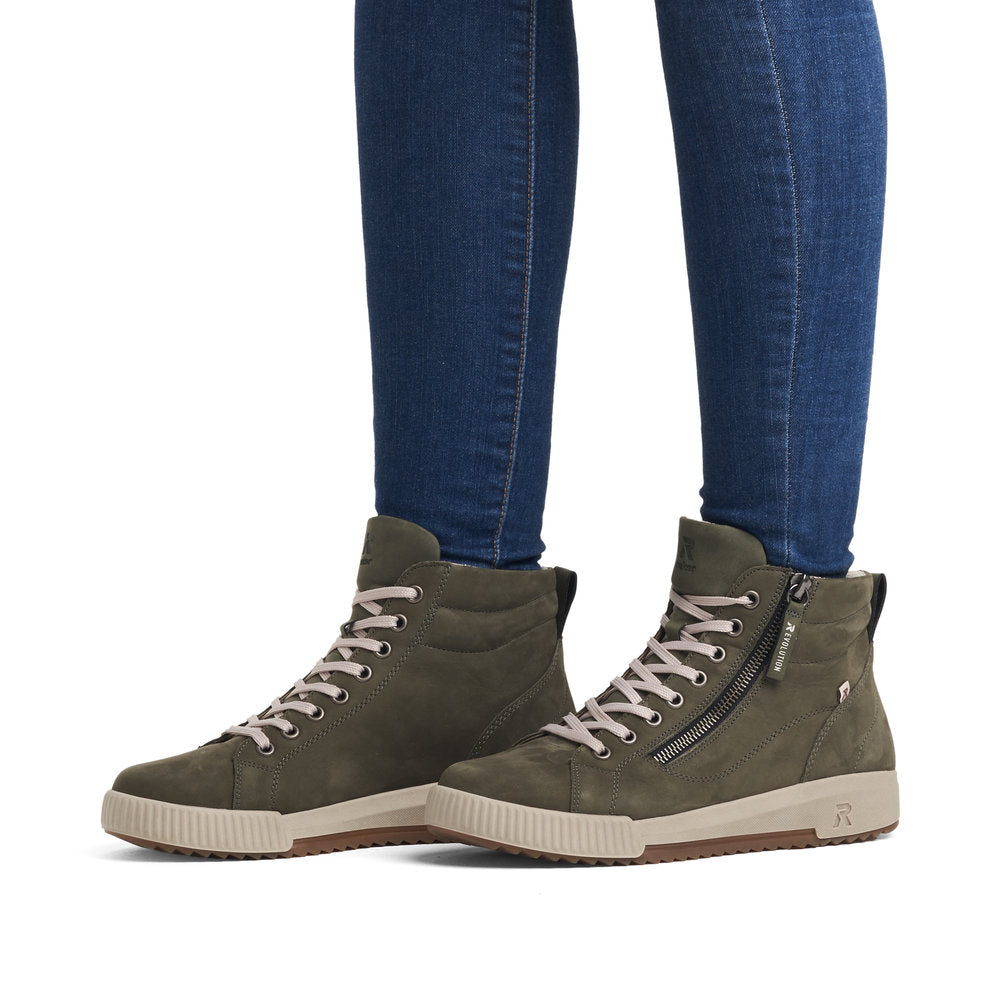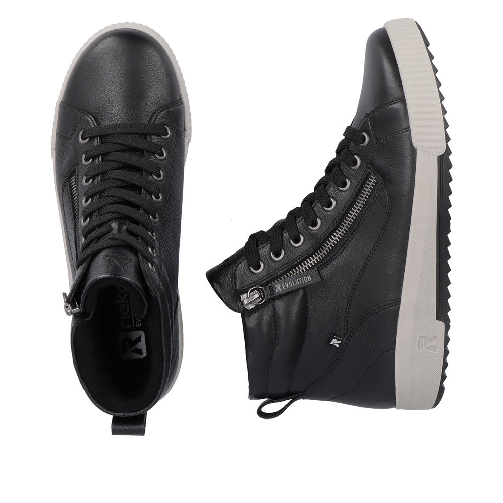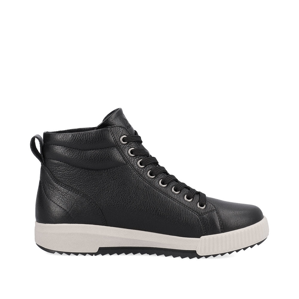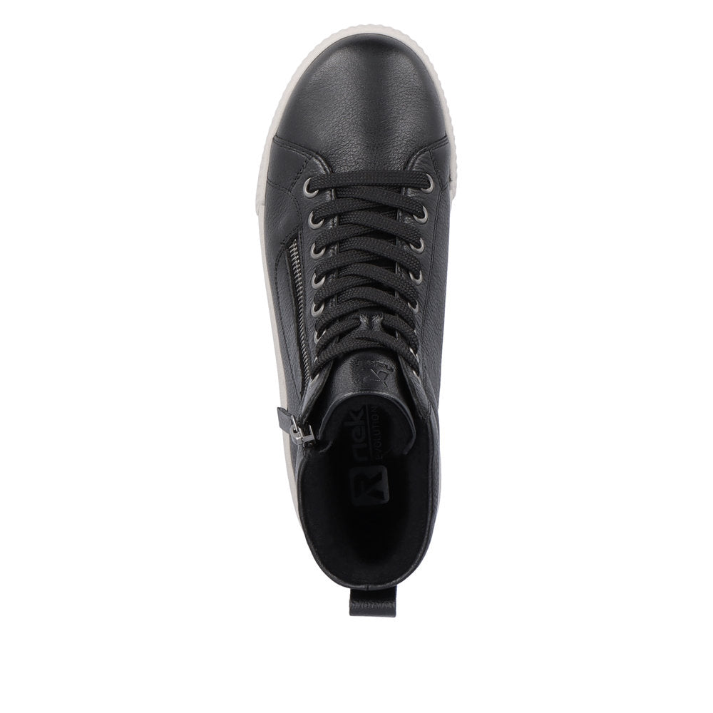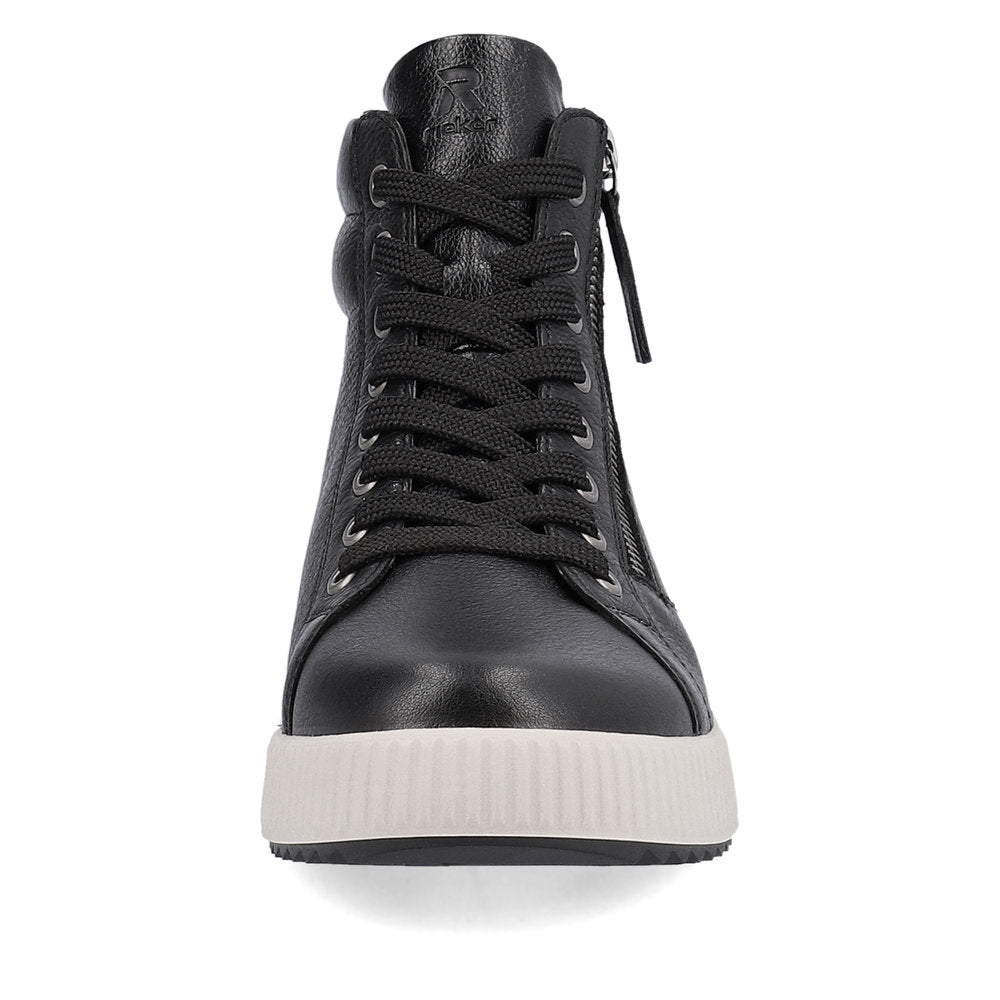 Être en forme à chaque pas ? C'est possible ! Ces baskets montantes Rieker noires tendance en cuir lisse sont LA pièce maîtresse. L'association astucieuse du laçage et de la fermeture éclair facilite l'enfilage et le retrait. La semelle adhérente et légère impressionne par sa bonne adhérence pour une foulée sûre. La semelle intérieure rembourrée et amovible garantit un confort optimal. Le confort est leur atout majeur !