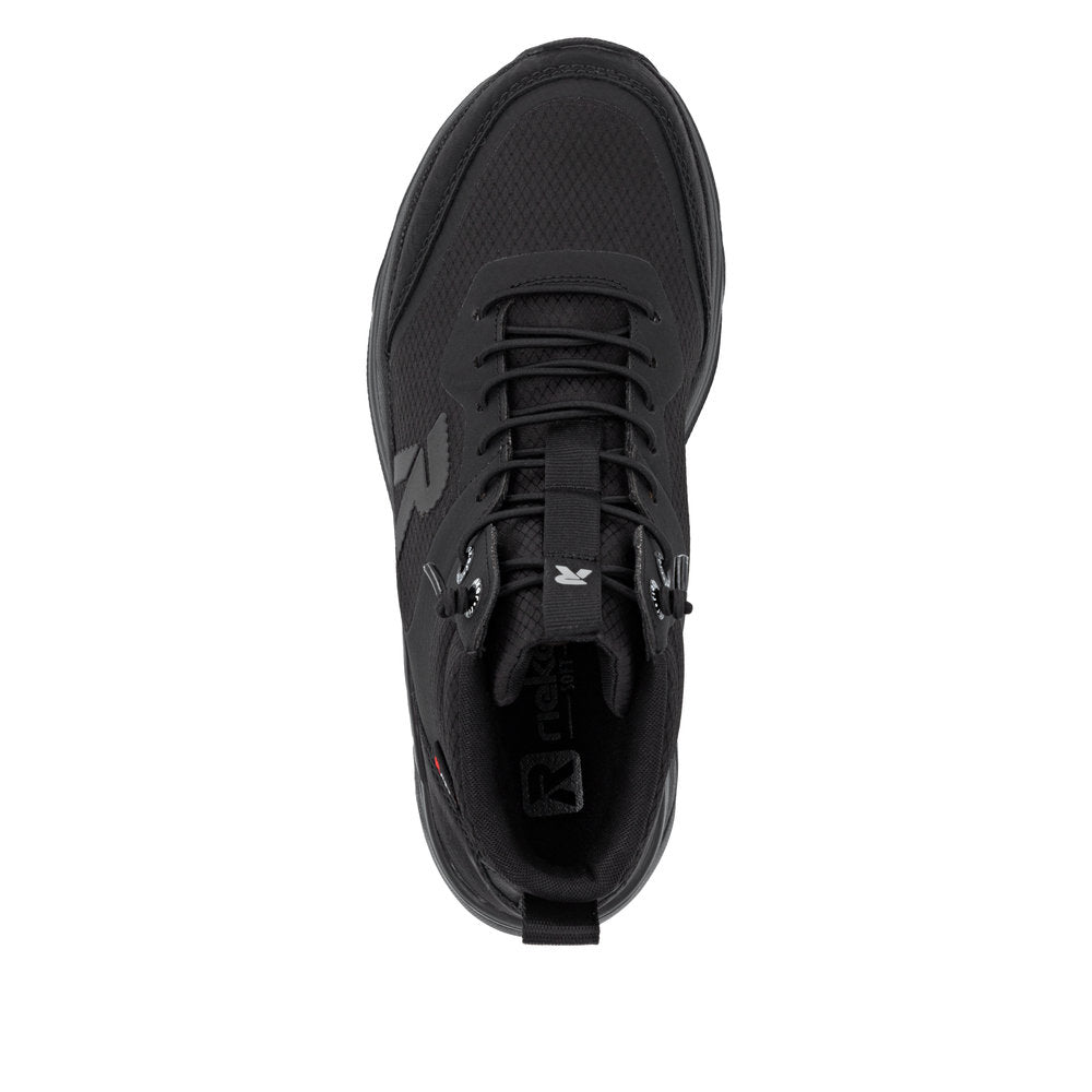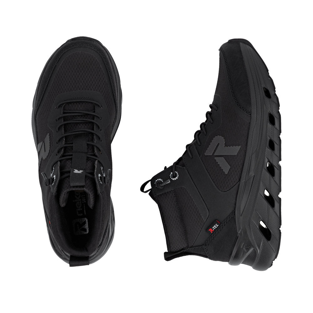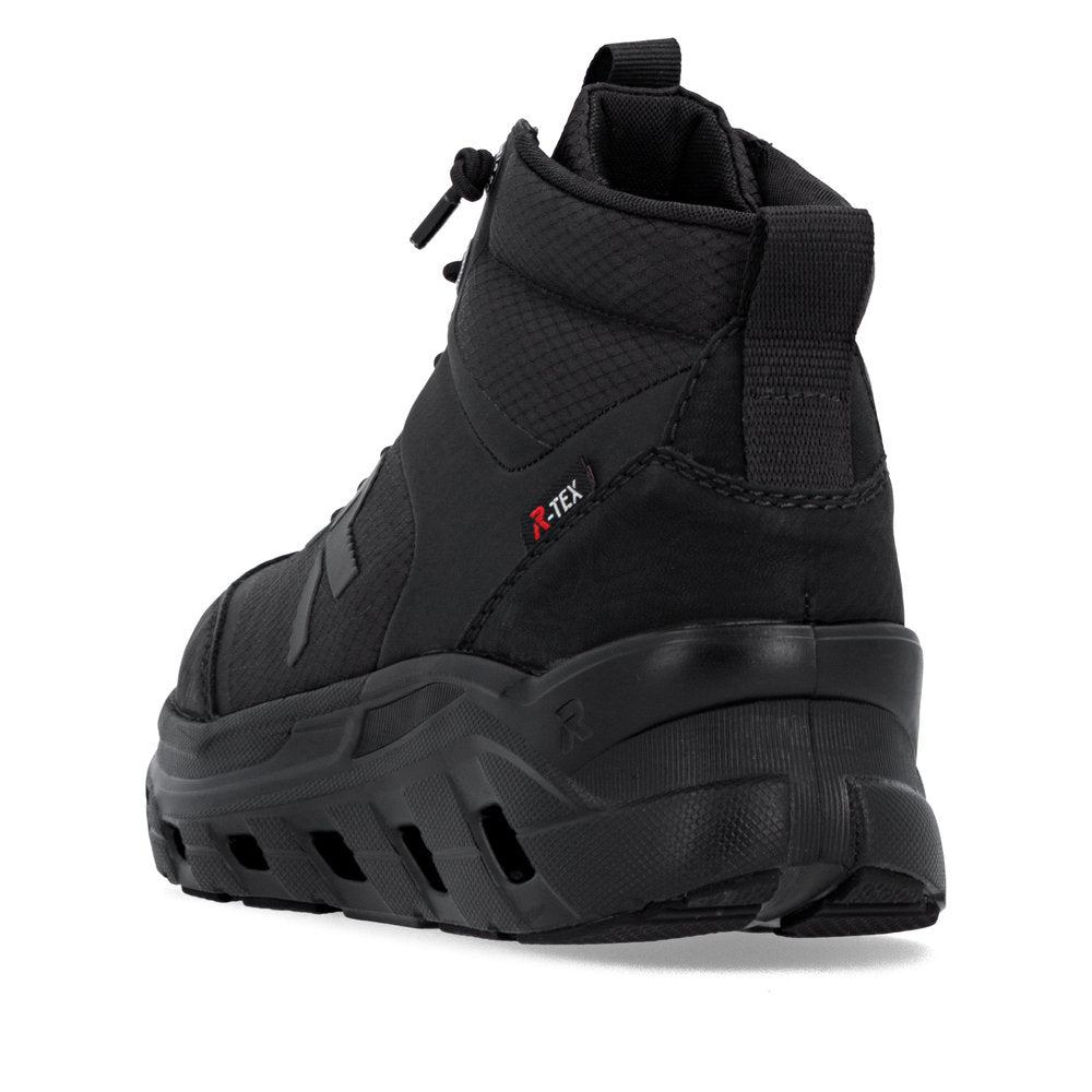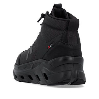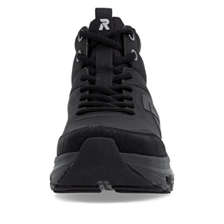 Baskets montantes Rieker noires en textile de qualité. Marche protégée : ce modèle est équipé d'une membrane RiekerTEX déperlante et respirante. Le revêtement HighTech Nano assure une protection contre l'eau et la saleté. Déroulement dynamique du talon aux orteils grâce à la semelle intérieure MemoCup rembourrée et amovible. Doublure en laine vierge très chaude pour une protection durable contre le froid. La largeur confortable assure un ajustement parfait. Une paire de lacets de rechange est incluse.