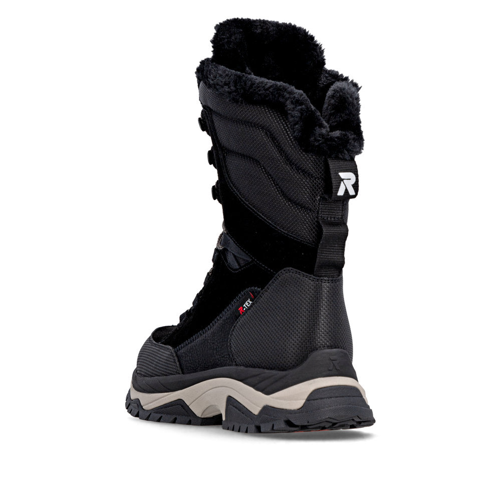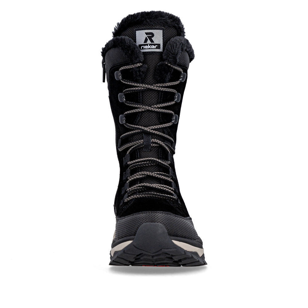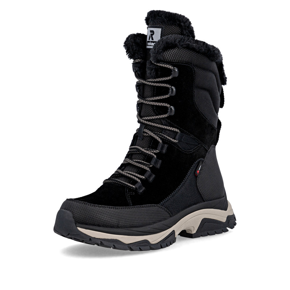 Voici votre nouvelle chaussure préférée ! Ces bottines noires à lacets Rieker séduisent par leurs matériaux fonctionnels qui protègent de l'humidité. Le laçage complète la fermeture éclair et garantit ainsi un maintien optimal et un ajustement parfait. Le bord de la tige en fourrure attire tous les regards. La semelle, à la fois légère et flexible, offre un double bien-être à chaque pas. Grâce aux propriétés déperlantes de la tige, elle offre une protection optimale contre les intempéries. La semelle intérieure thermique maintient l'intérieur de la chaussure au chaud et la semelle Fiber-Grip offre une adhérence supplémentaire. Vos pieds restent agréablement au chaud toute la journée grâce à la laine vierge douillette et très chaude ! Tout simplement top !