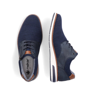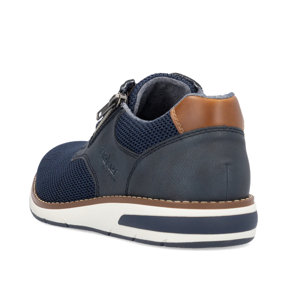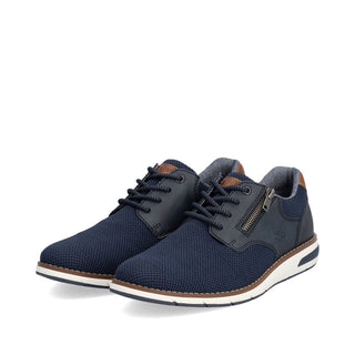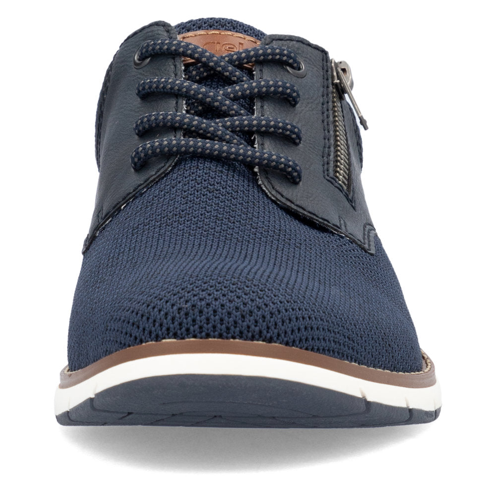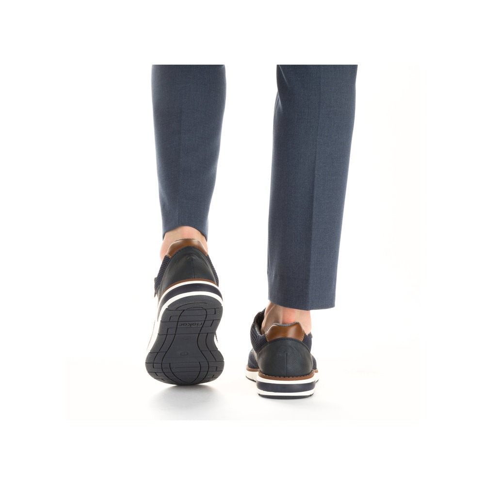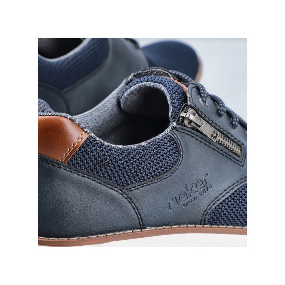Comfortable and good-looking - it works! These blue Rieker lace-up shoes impress with their modern design and high comfort. The lacing complements the zipper and thus guarantees optimal support and perfect fit. The shoe has a grippy sole that offers good traction for a secure step. In addition, the cover sole is extra soft. Thanks to the comfort width G 1/2, there is enough space in the forefoot area. More is not possible!
