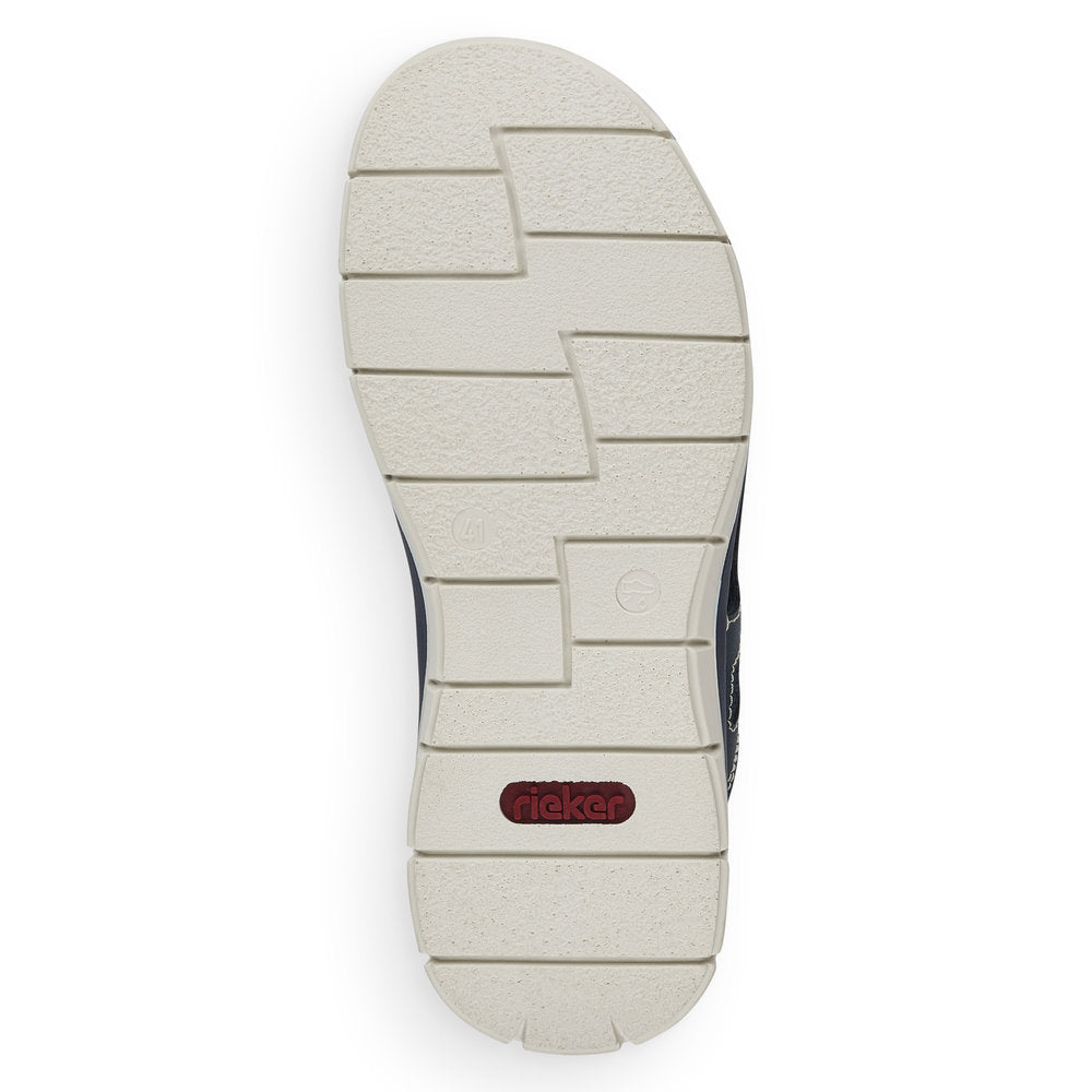 Favorite shoe potential! These sea blue shoes made of imitation leather by Rieker guarantee a heavenly feeling. Thanks to straps and a hook and loop fastener, the shoe adjusts precisely to the foot. The wide heel strap provides additional support. The shock absorbing and very light sole additionally pampers the feet with every step. The comfort width G 1/2 gives you more space in the shoe. What are you waiting for?