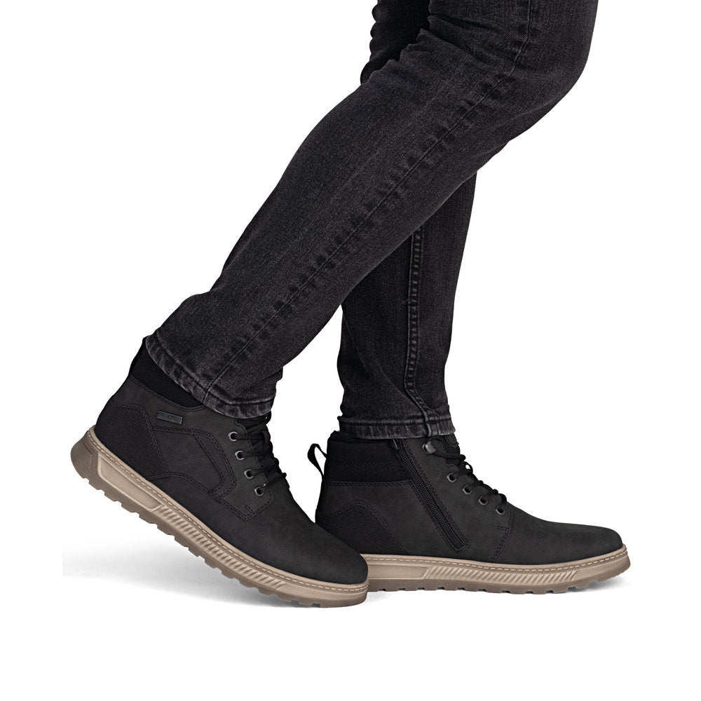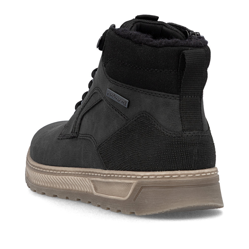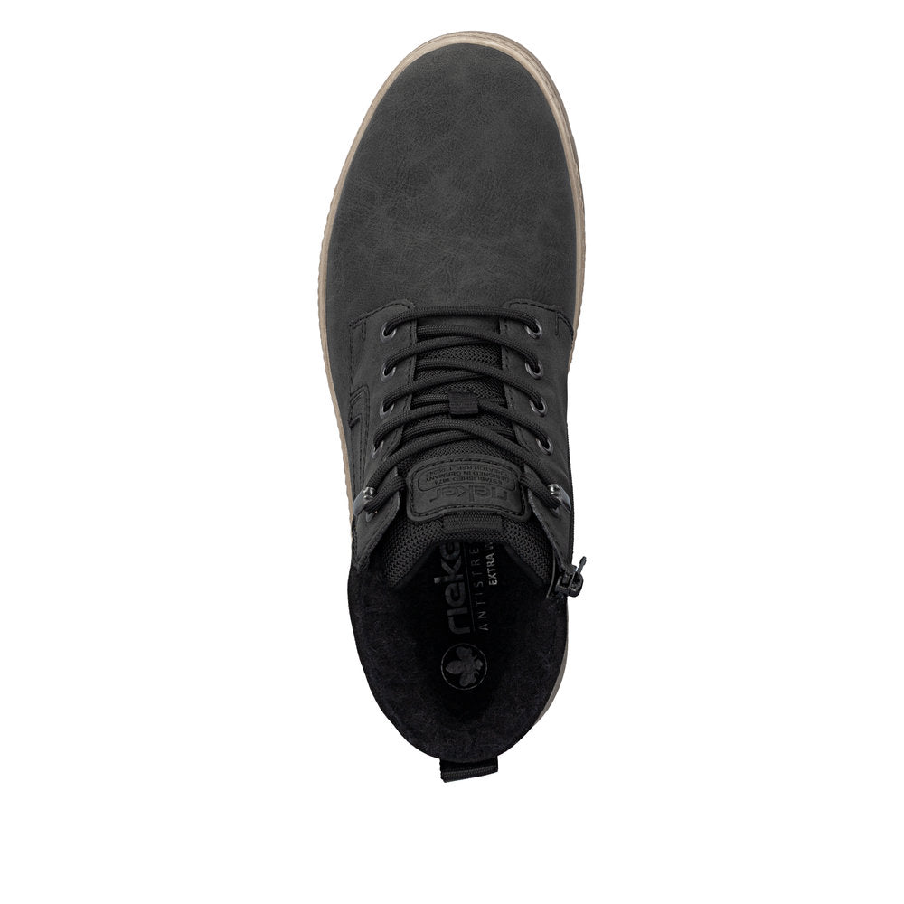 Comfort meets style. These black Rieker high-top sneakers are the perfect companion for any occasion. Despite the lacing, the shoe can be easily closed by the zipper. The grippy sole provides support on different paths. In addition, the extra soft cover sole provides an extra portion of comfort. The extra width offers sufficient freedom of movement for the toes. The combination of the water-repellent RiekerTEX membrane and cozy and very warm virgin wool lining ensures warm and dry feet in any weather. So let's get going!