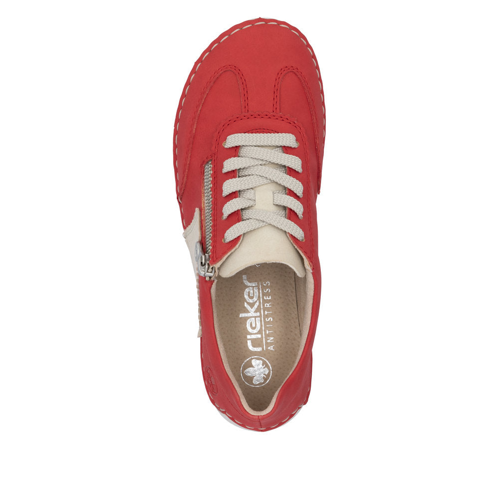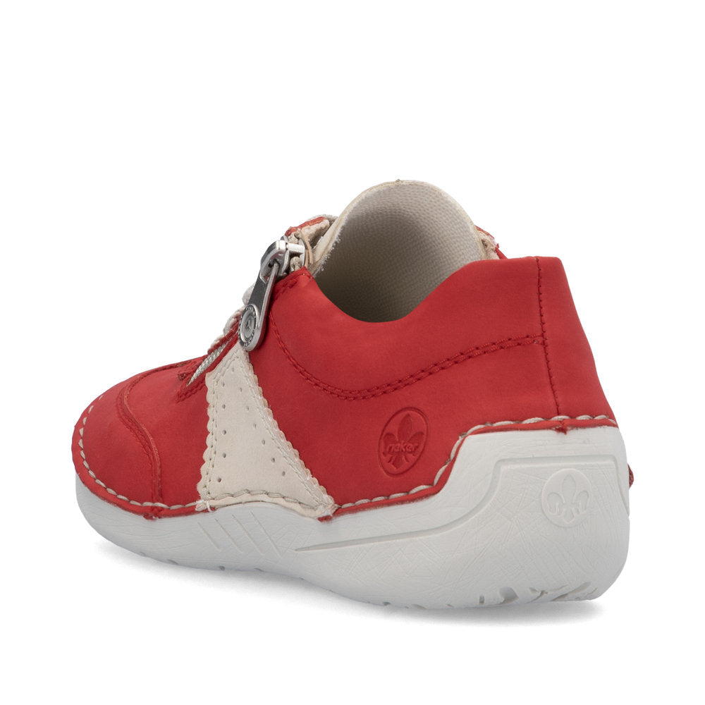 Fashion lovers take note: the Rieker must-haves have arrived! You won't want to take off these red Rieker lace-up shoes. The traditional stitchdown construction makes the shoe particularly flexible and robust and ensures a great fit. The lacing complements the zipper for functionality and comfort. With the light and shock-absorbing sole, your feet will enjoy the best walking comfort at every step. The cover sole is also extra soft. Attention, favourite shoe potential!
