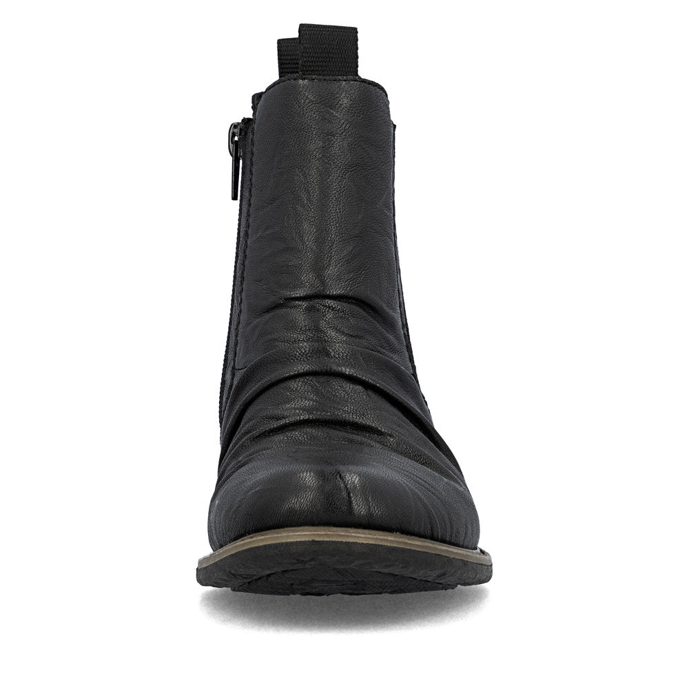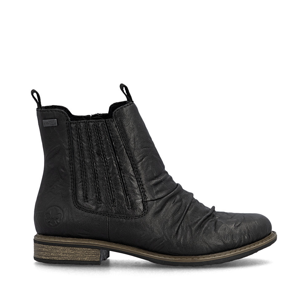 Beautifully simple and yet modern. These black Rieker Chelsea boots made of smooth leather are a comfortable companion. In addition to the zipper, the model has an elastic insert, making it twice as easy to put it on. The grippy sole gives traction on different paths. The boots have a padded and removable insole that is like holiday for your feet! A feel-good factor on top is the extra width, which offers more space in the shoe. Thanks to the water-repellent RiekerTEX membrane, the feet stay dry even on wet and cold days. Attention, favourite shoe potential!