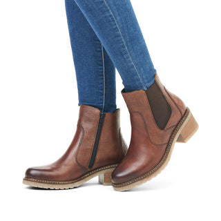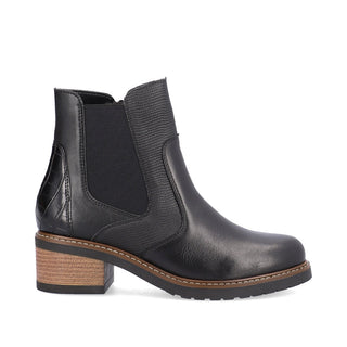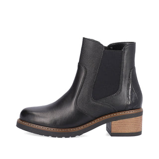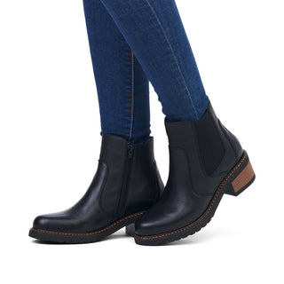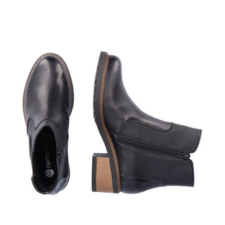 Ladies, pay attention! These midnight black Chelsea boots made of smooth leather by remonte exude feminine confidence. The zipper together with the elastic insert is typical for Chelsea boots and makes it easy to put on and take off the shoe. An exchangeable footbed and the flexible and cushioning profile sole with block heel are great goodies on top. For all ladies with size 45, these Chelsea boots are also available in oversizes. Jackpot!