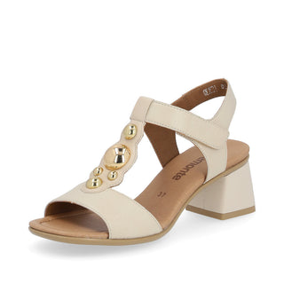 Maximum comfort at every turn! These cream beige strap sandals made of smooth leather by remonte exude feminine confidence. Thanks to hook and loop fasteners and the wide straps, these sandals for ladieses can be comfortably closed and individually adjusted. The middle strap with round golden metal element harmoniously rounds off the look of the shoe. With the light and cushioning sole with block heel, your feet will be pampered at every step. For all ladies with size 45, these strap sandals are also available in oversizes. The leather lining is not only super comfortable, but also flexible, making it comfortable to wear all day long. You can't get more style than this!