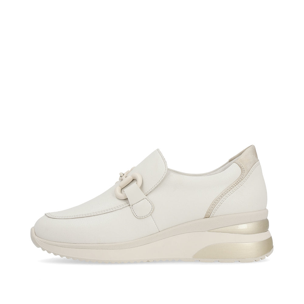 Set highlights! These comfortable jet black slippers by remonte impress with a cool look and functionality. The shoe has no fastener and can therefore be put on in no time at all. The decorative accessory is a real eye-catcher. The exchangeable footbed meets a flexible and especially light sole that superbly balances even hard surfaces. The comfort width G offers enough space for the feet to feel comfortable even when worn for longer periods. The slippers are equipped with a light microvelour lining. Wait for what?