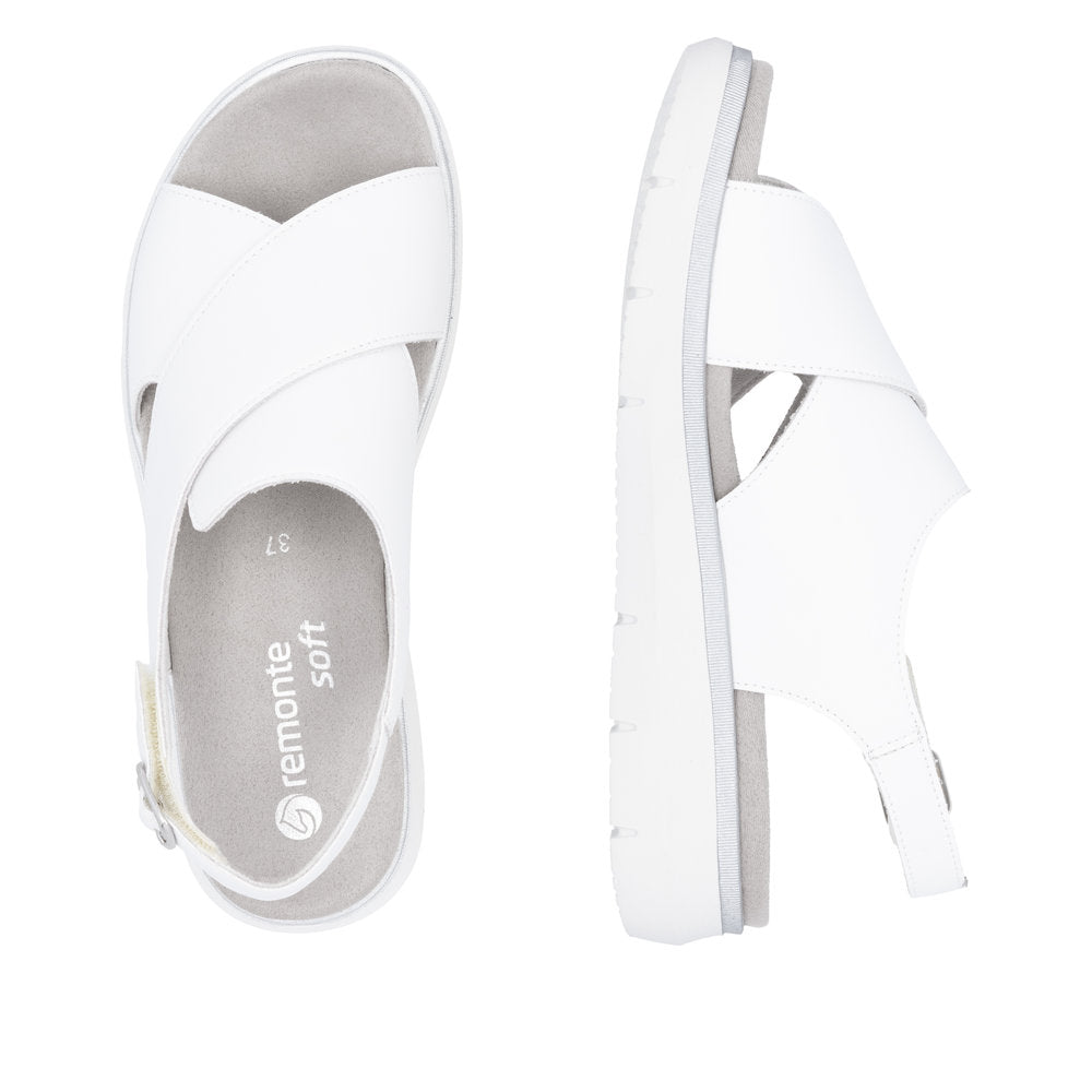 Sandal Love! These white remonte strap sandals made of smooth leather are absolute allround talents! Thanks to a hook and loop fastener, the sandals can be comfortably closed and adjusted for a perfect fit. The Lite 'n Soft technology combines a super light sole with a soft and removable insole. For all ladies with large feet, the sandals are also available in oversizes. You can't get more style than this!