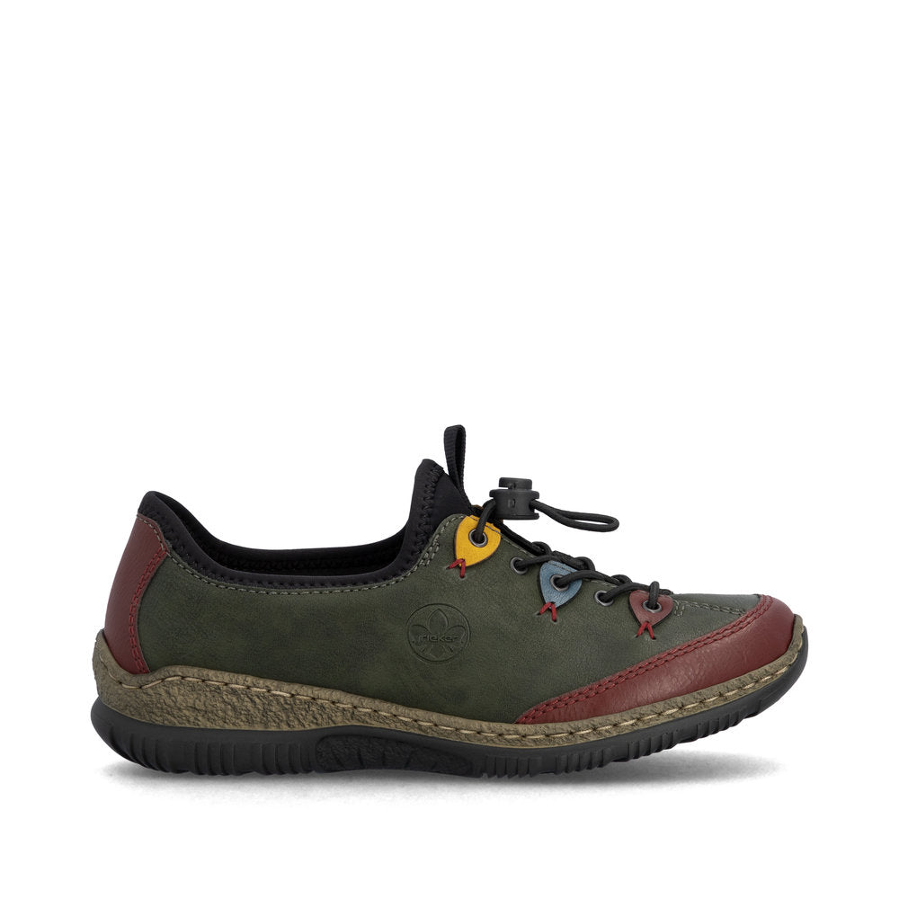 All-time favourite! These azure Rieker slippers impress with a classic design and high comfort. The stitchdown construction makes the shoe robust and the sole particularly flexible without causing damage at the transition to the upper. The elastic lacing makes it easy and comfortable to put on and take off the shoe. The fashionable eyelet decoration adds a fashionable touch to the design. The shock-absorbing and light sole promises sure-footedness and the extra soft MemoSoft cover sole is another plus. Simply top!