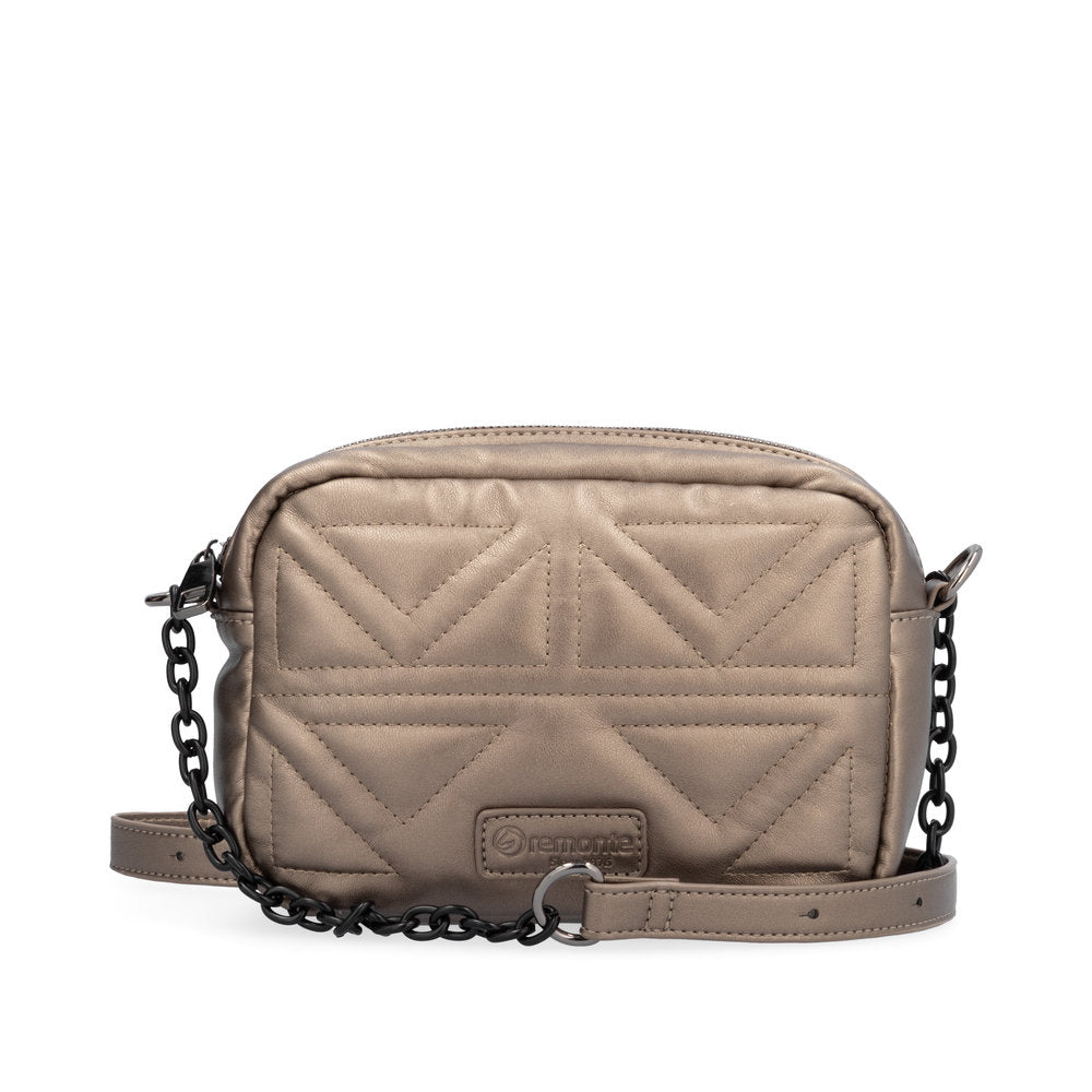 Diese remonte Umhängetasche in Metallicbeige sieht zwar klein aus, das ist sie aber auf keinen Fall! Das geräumige Hauptfach verfügt über zwei Innenfächer, eines davon mit Reißverschluss, das andere ohne Verschluss. Zudem gibt es ein Reißverschlussfach auf der Rückseite außen. Der Riemen zum Umhängen lässt sich verstellen und abnehmen. Optisches Highlight: Das gesteppte Design in coolem Muster.
