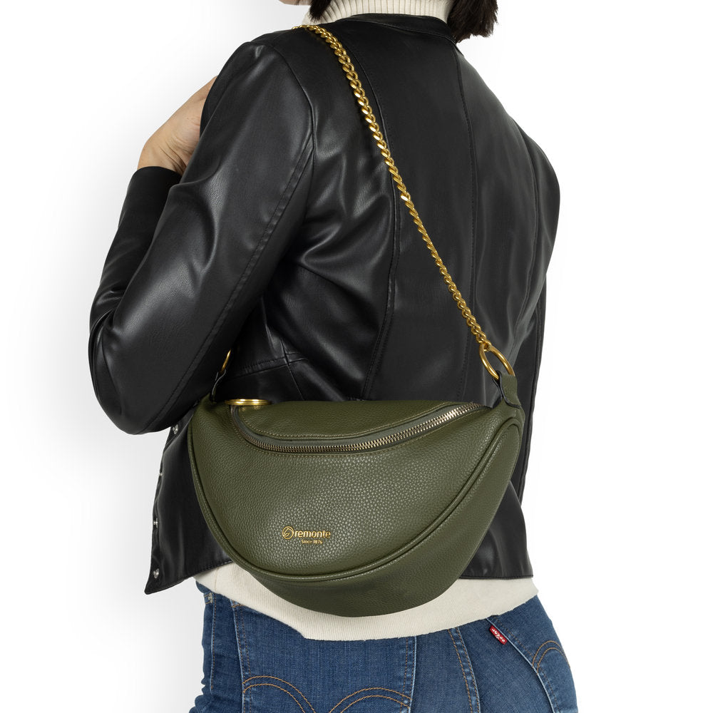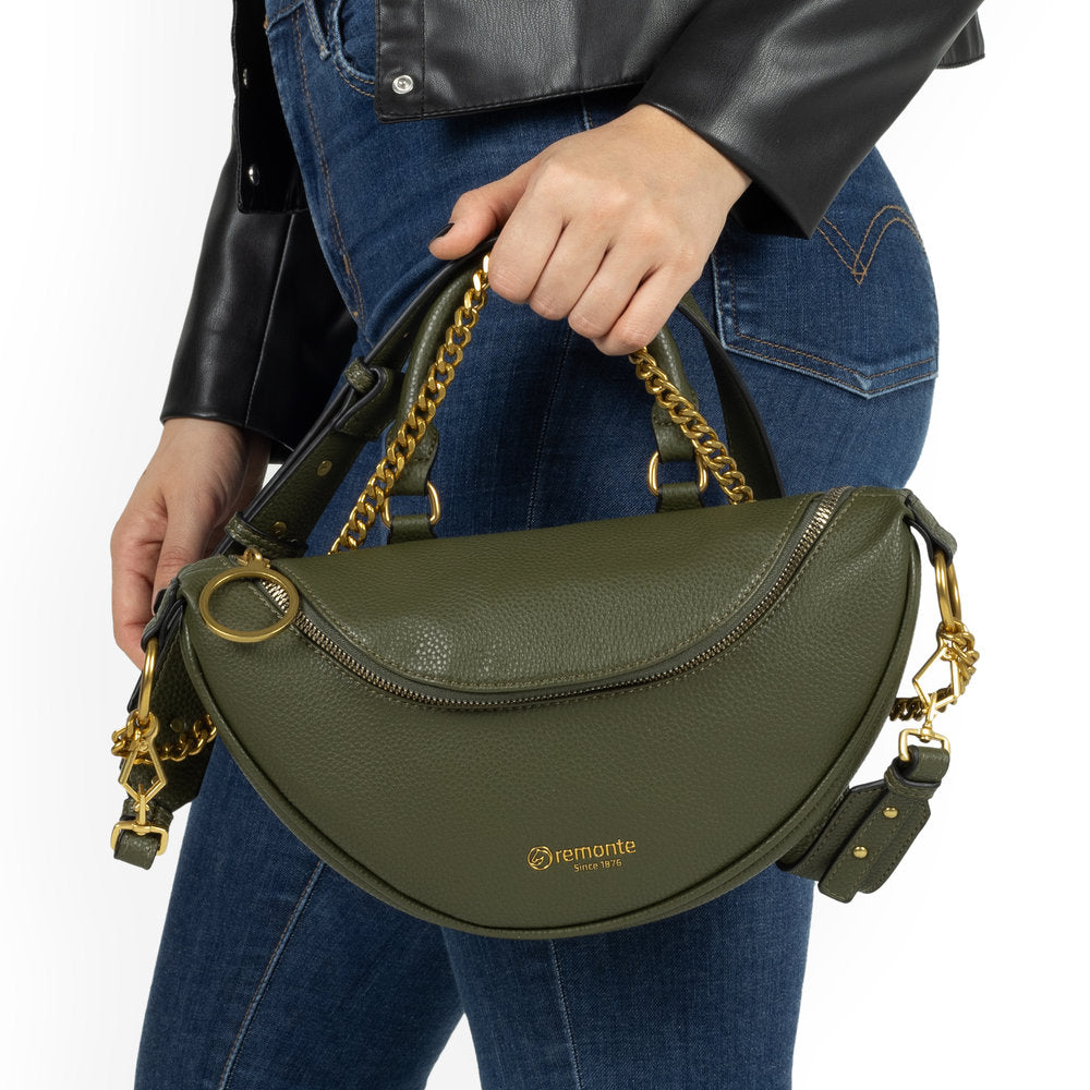 Super praktisch, super stylisch! Diese tiefschwarze remonte Handtasche sieht aus wie eine Bauchtasche und ist genauso cool, bietet aber deutlich mehr Stauraum. Innen befindet sich ein Reißverschlussfach, in dem wichtige Utensilien verstaut werden können. On top extrem praktisch ist der Henkel, mit dem man die Tasche auch mal in der Hand tragen kann. Der Schulterriemen lässt sich unkompliziert abnehmen.