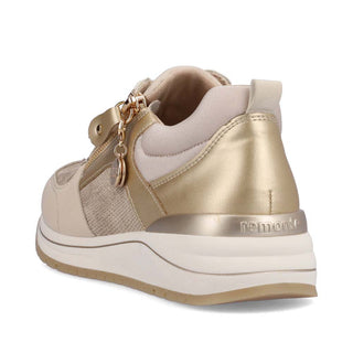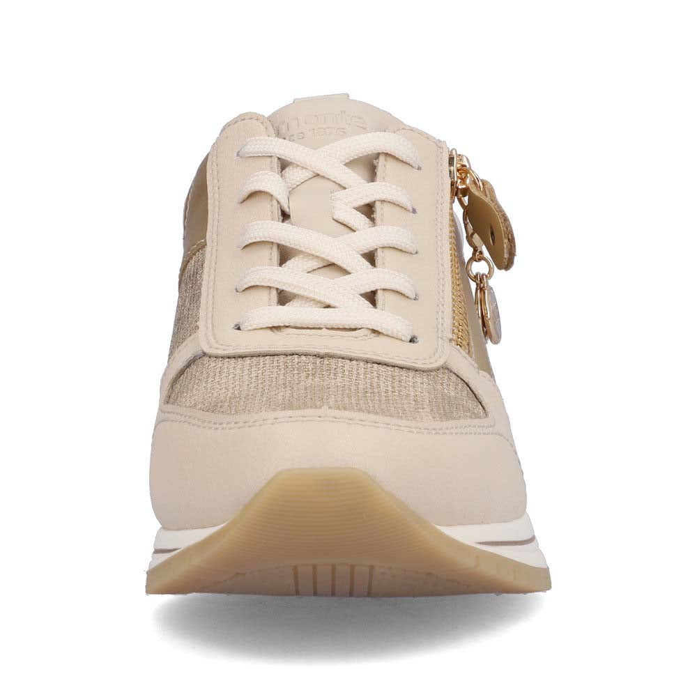 remonte by ELLE! These beige sneakers by remonte made of imitation leather are part of the remonte by ELLE collection. They have everything a comfortable shoe needs: the clever combination of lacing and zipper gives optimal support and makes it easy to put on and take off the shoe. The extra soft exchangeable footbed and the light profile sole are great goodies on top. Thanks to the light micro suede lining, ideal comfort is guaranteed! For all ladies with size 45, these sneakers are also available in oversizes. Fashion in Bestform with remonte and ELLE!