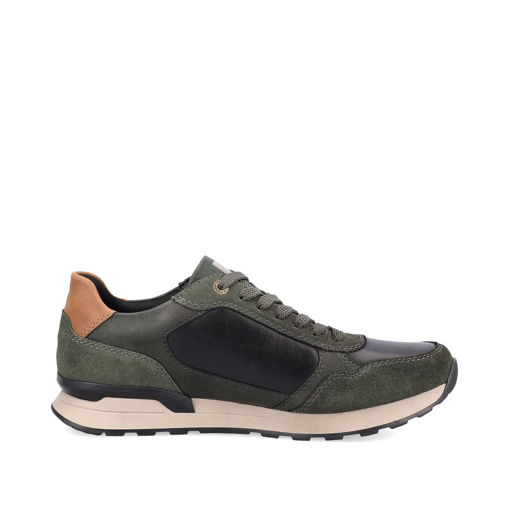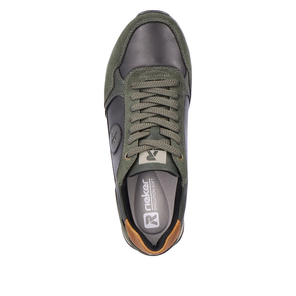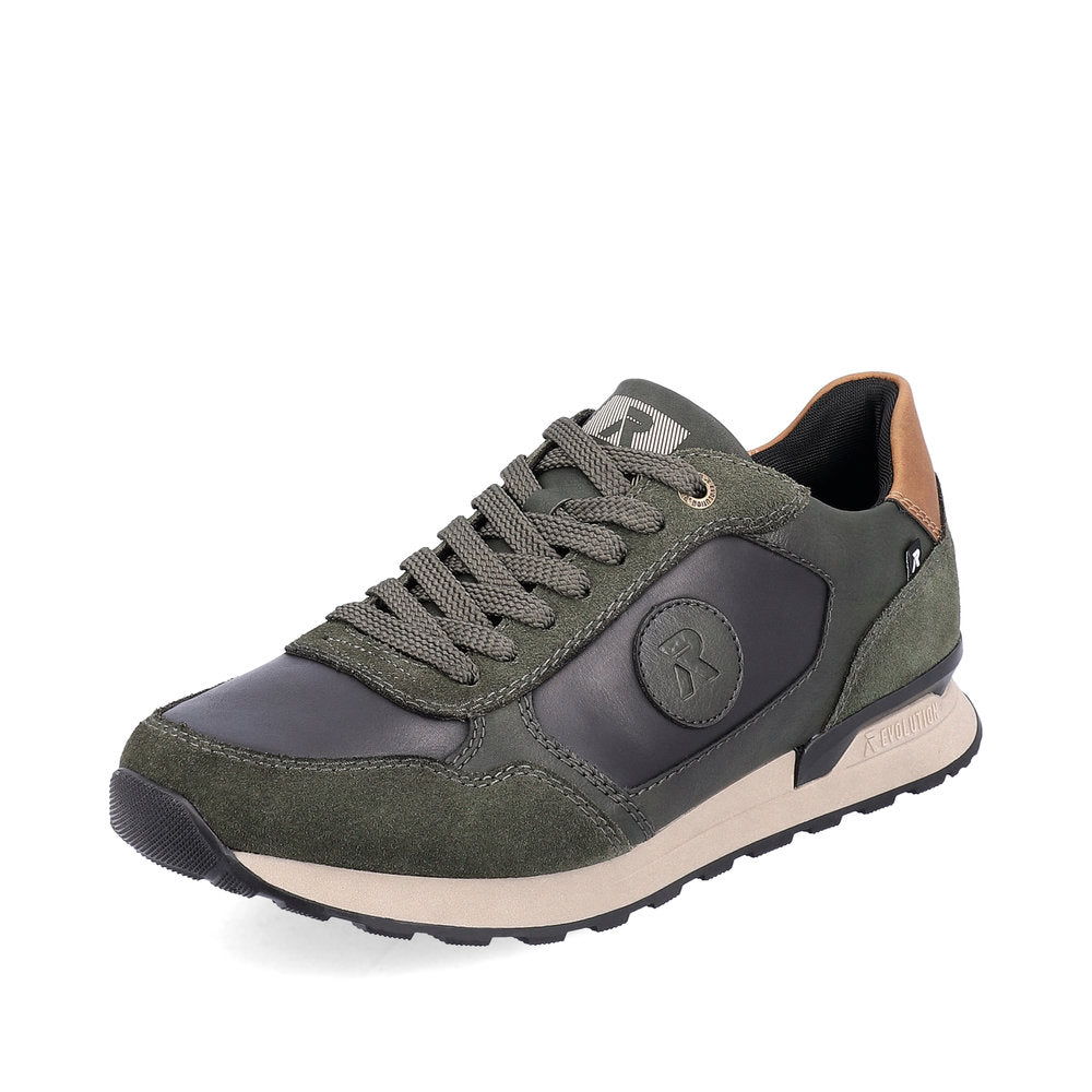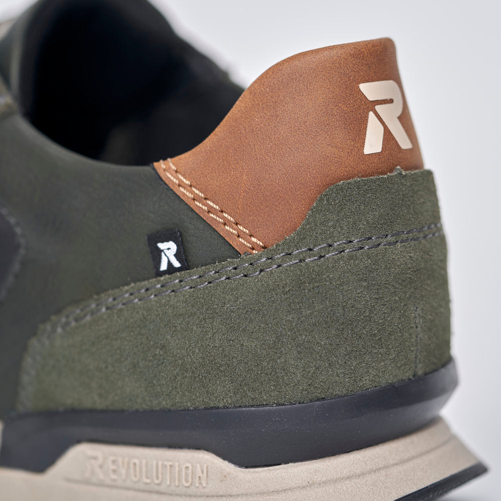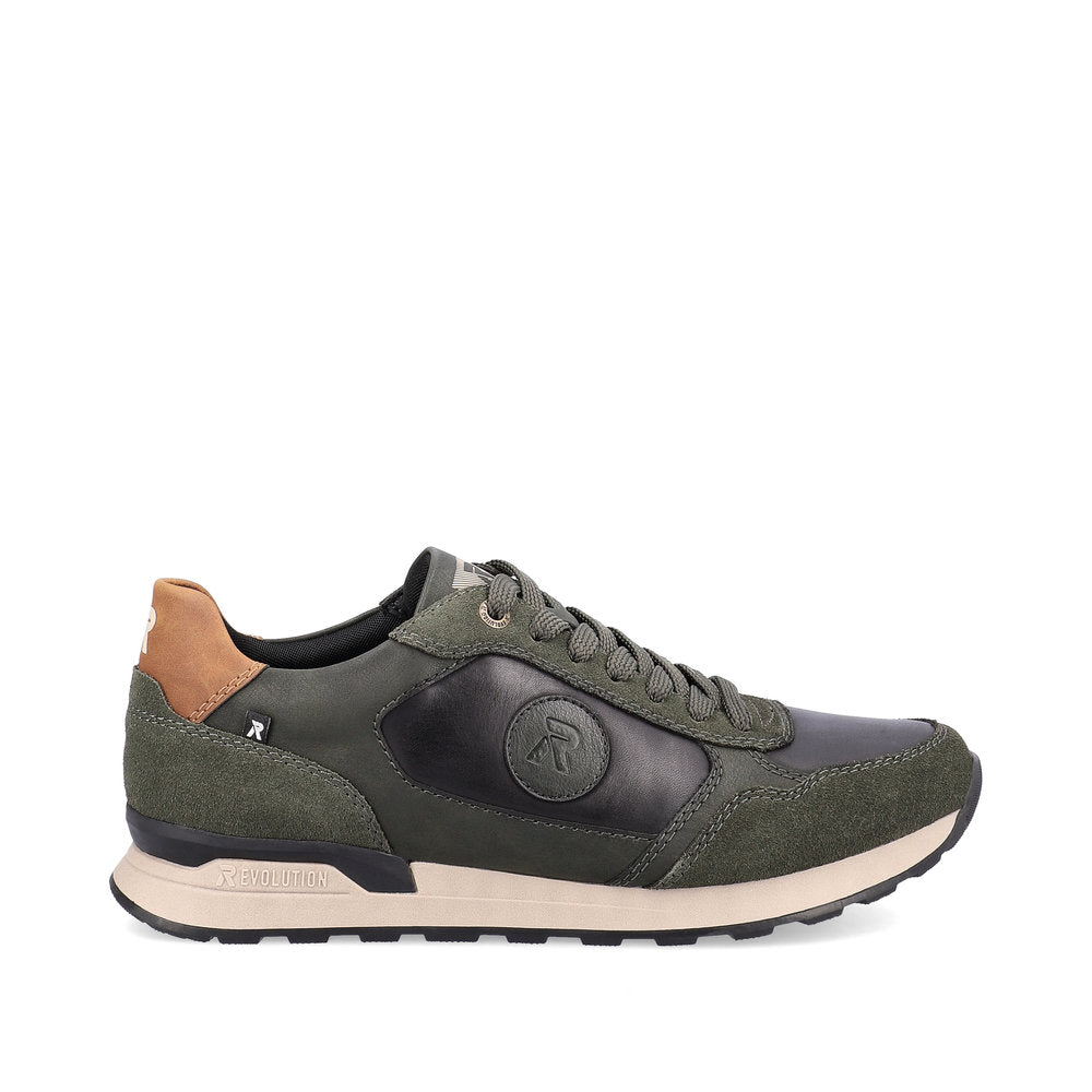 The R in Rieker stands for Revolutionary. These green sneakers by Rieker EVOLUTION made of smooth leather are the perfect companions for the new season. In addition, the lacing ensures a good fit. With the light profile sole, sure-footed walking is a matter of course. The padded and removable insole is the practical comfort feature par excellence. Thanks to the comfort width G 1/2, there is enough space in the forefoot area. The inner lining made of breathable microvelour offers long-lasting comfort. Put it on and let?s go!