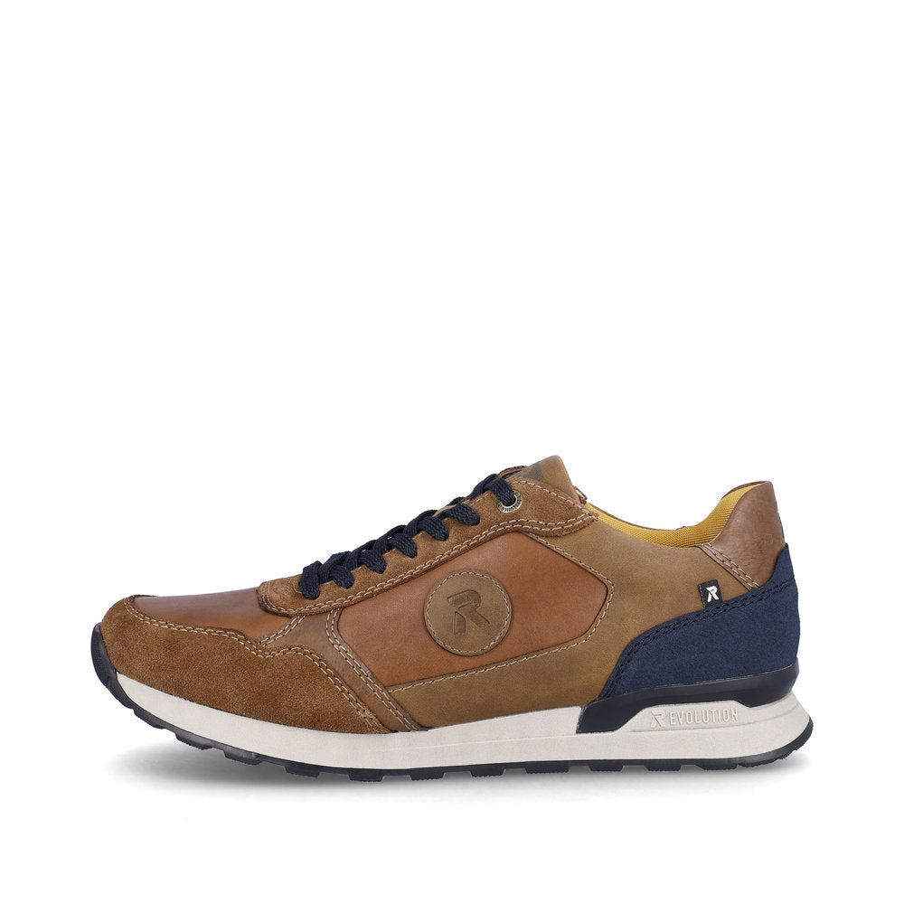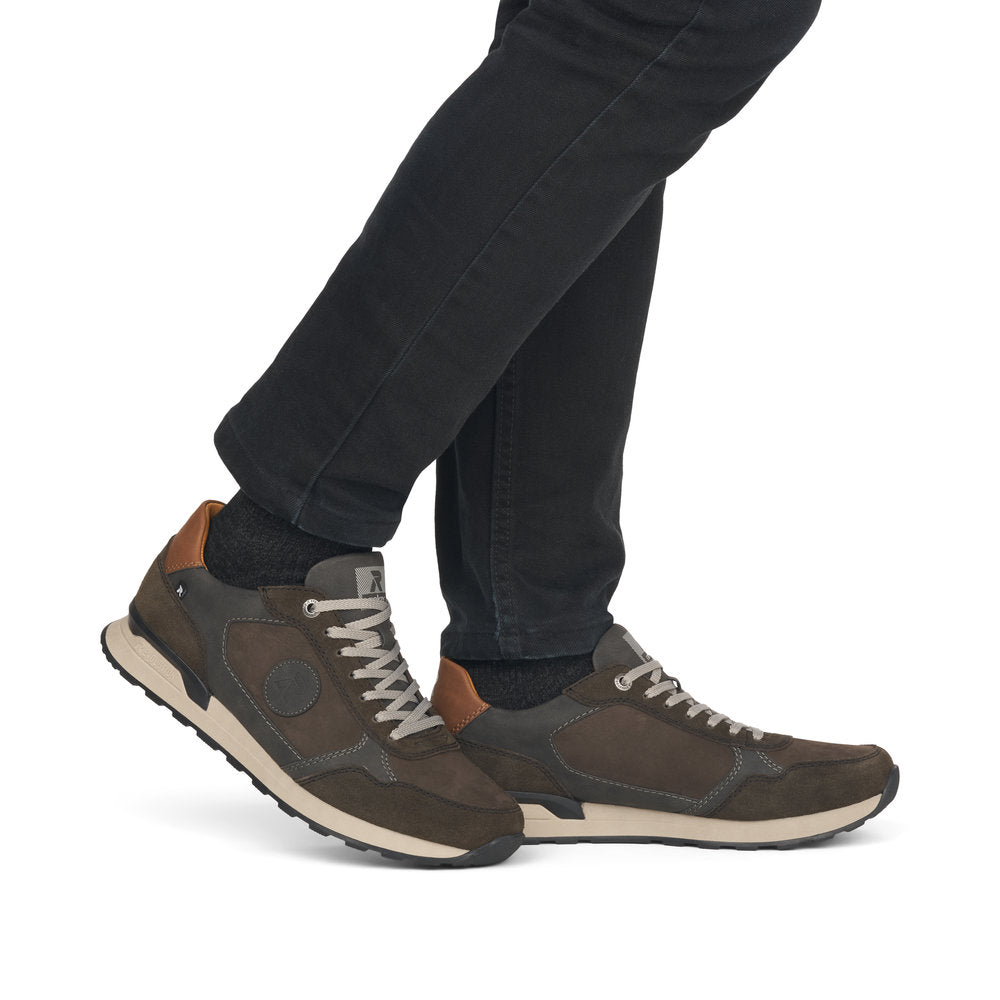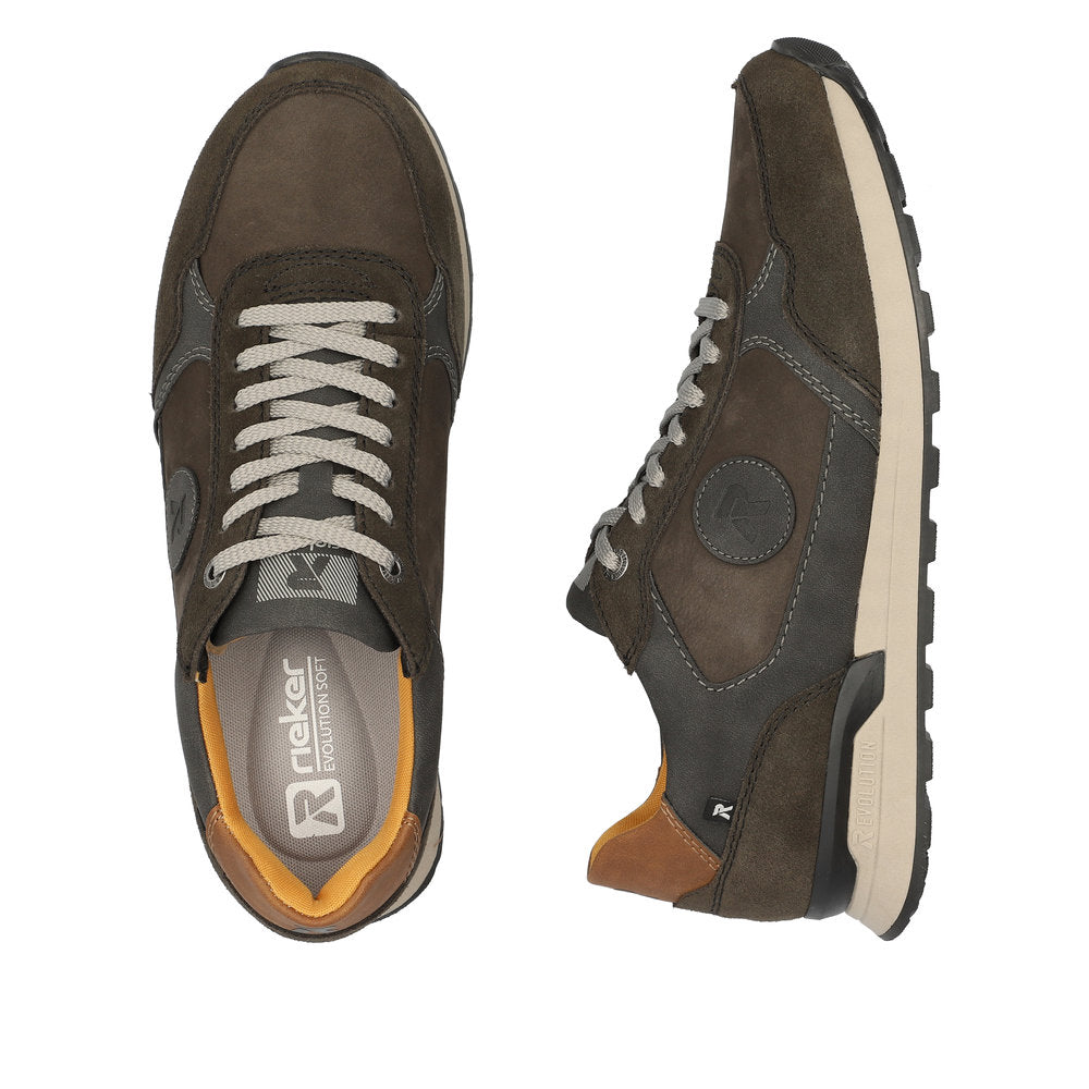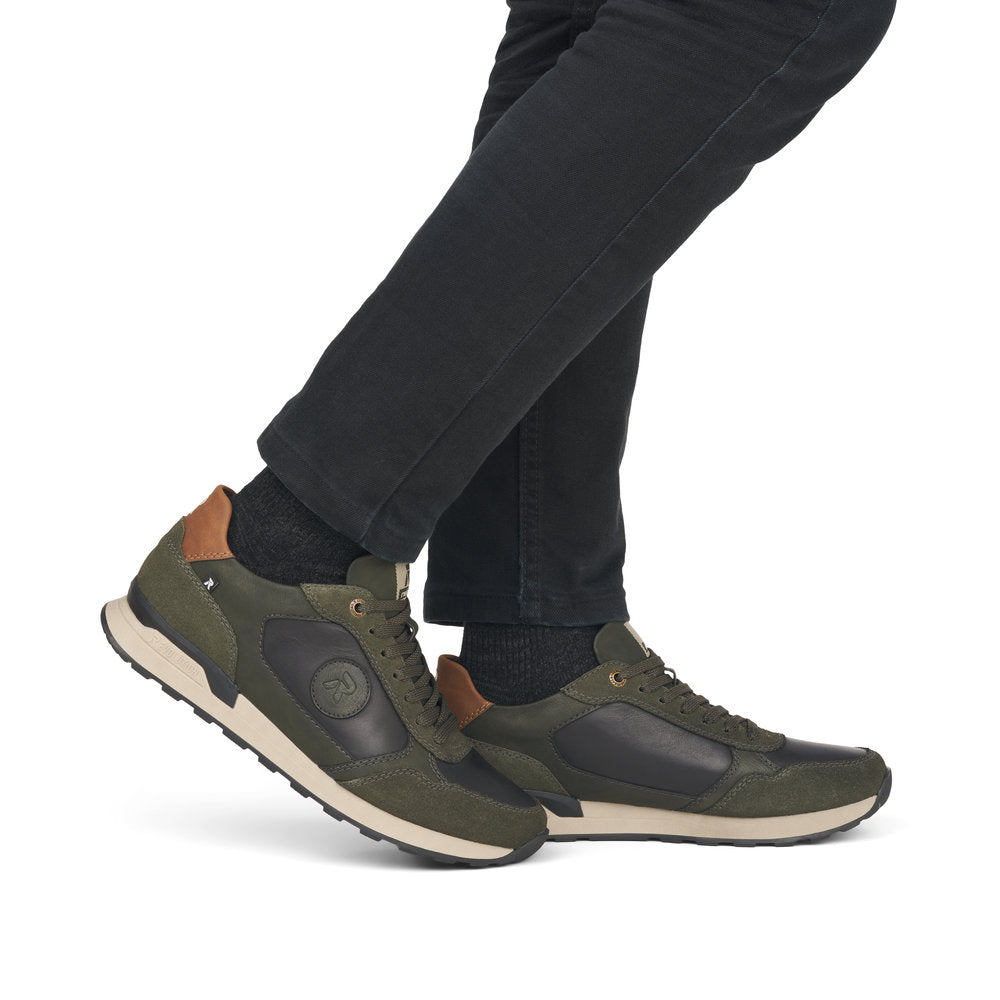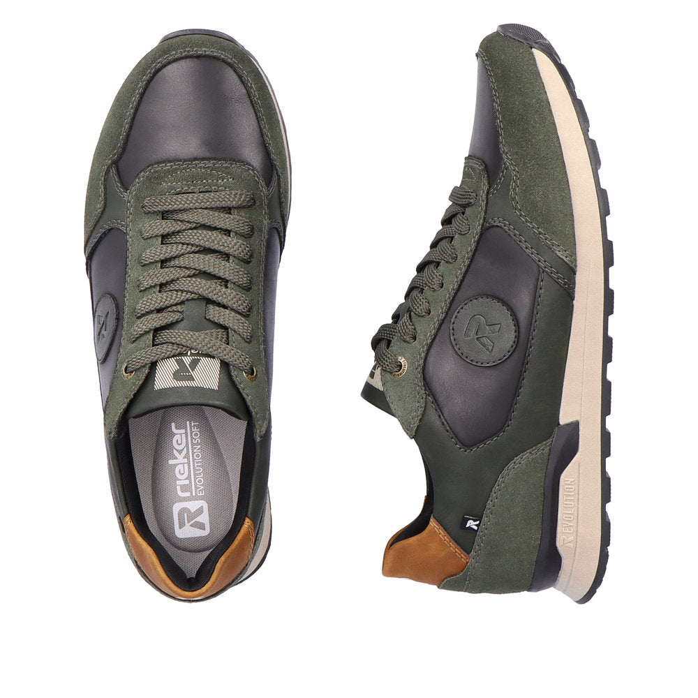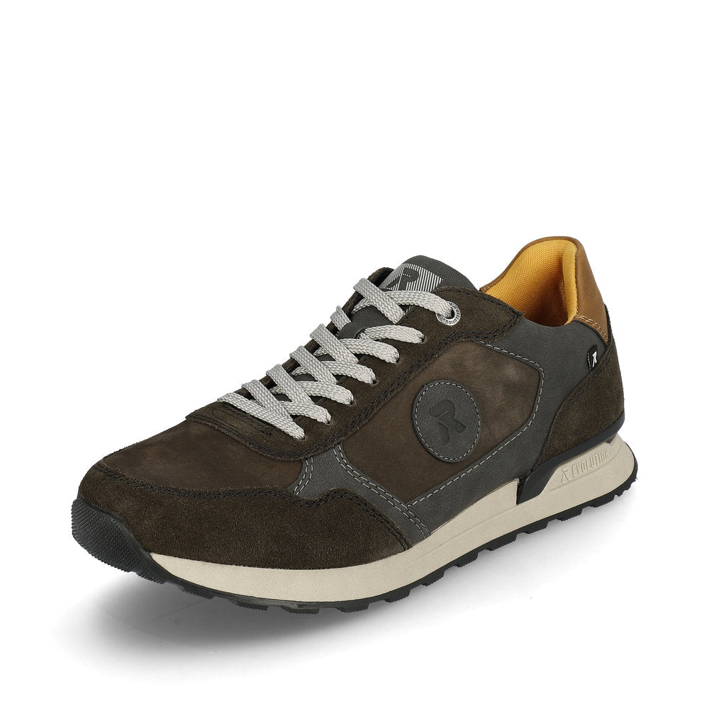 The R in Rieker stands for Revolutionary. These green sneakers by Rieker EVOLUTION made of smooth leather are the perfect companions for the new season. In addition, the lacing ensures a good fit. With the light profile sole, sure-footed walking is a matter of course. The padded and removable insole is the practical comfort feature par excellence. Thanks to the comfort width G 1/2, there is enough space in the forefoot area. The inner lining made of breathable microvelour offers long-lasting comfort. Put it on and let?s go!