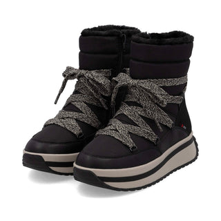 Next level comfort and style! These black Rieker lace-up boots are always the right choice! The clever combination of lacing and zipper makes it easy to put on and take off the shoe. Thanks to the ultra-light and super soft EVA mid-sole in the robust outsole, walking becomes twice as pleasant. The water-repellent surface of the shoes offers optimal weather protection and the thermal insole features protection against the cold. Cozy and very warm virgin wool makes these lace-up boots the perfect companions no matter when, no matter where! The cold goes away empty-handed!