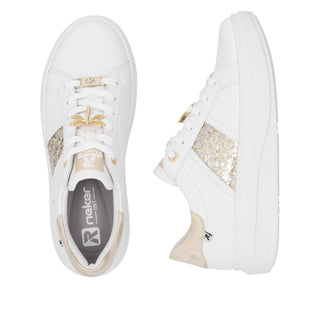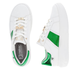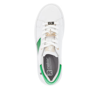 The perfect fusion of style, comfort and function! These Rieker Sport sneakers made of smooth leather are loved by those who like timeless white and comfort. In addition, the lacing ensures that the shoe fits best at all times. The ultra-light and flexible sole additionally pampers the feet at every step. The padded and removable insole is the practical comfort feature par excellence. The shoe is lined with lightweight microvelour that is breathable. Very cool!