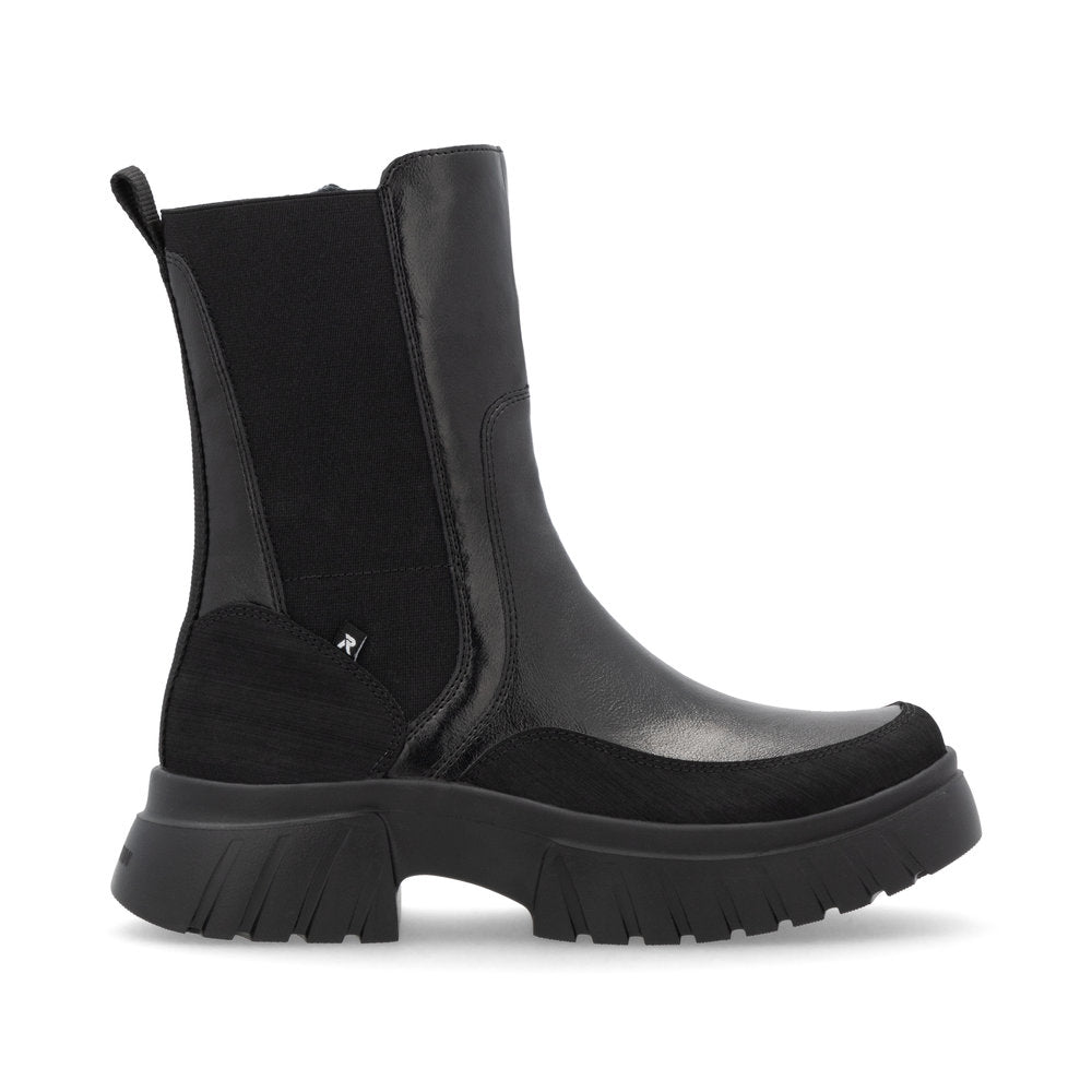 Design meets function! These cool Rieker Chelsea boots are THE shoe for every day, because black fits everything! In addition to the zipper, the model has an elasticated shaft edge, making it twice as easy to put it on. The flexible and ultra light sole additionally pampers the feet at every step. The padded and removable insole is the practical comfort feature par excellence. Furthermore, the comfort width G 1/2 offers your feet more freedom of movement in the forefoot area. Simply easy going!