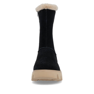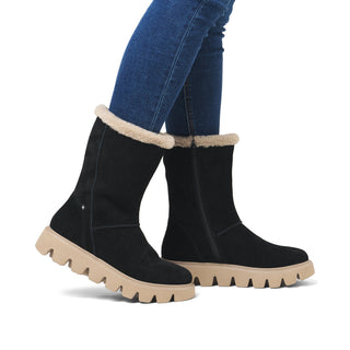 A dream trio: style, comfort and function! These black Rieker ankle boots made of suede leather make the cold season fun. The zipper makes it easy to put on and take off the shoe. The flexible and ultra light sole additionally pampers the feet at every step. A feel-good factor on top is the comfort width G, which offers more space in the shoe. The integrated thermal foil ensures warmth even at low temperatures. Comfortably warm and moisture-regulating lamb fur keeps the feet warm all day long. Go for it!